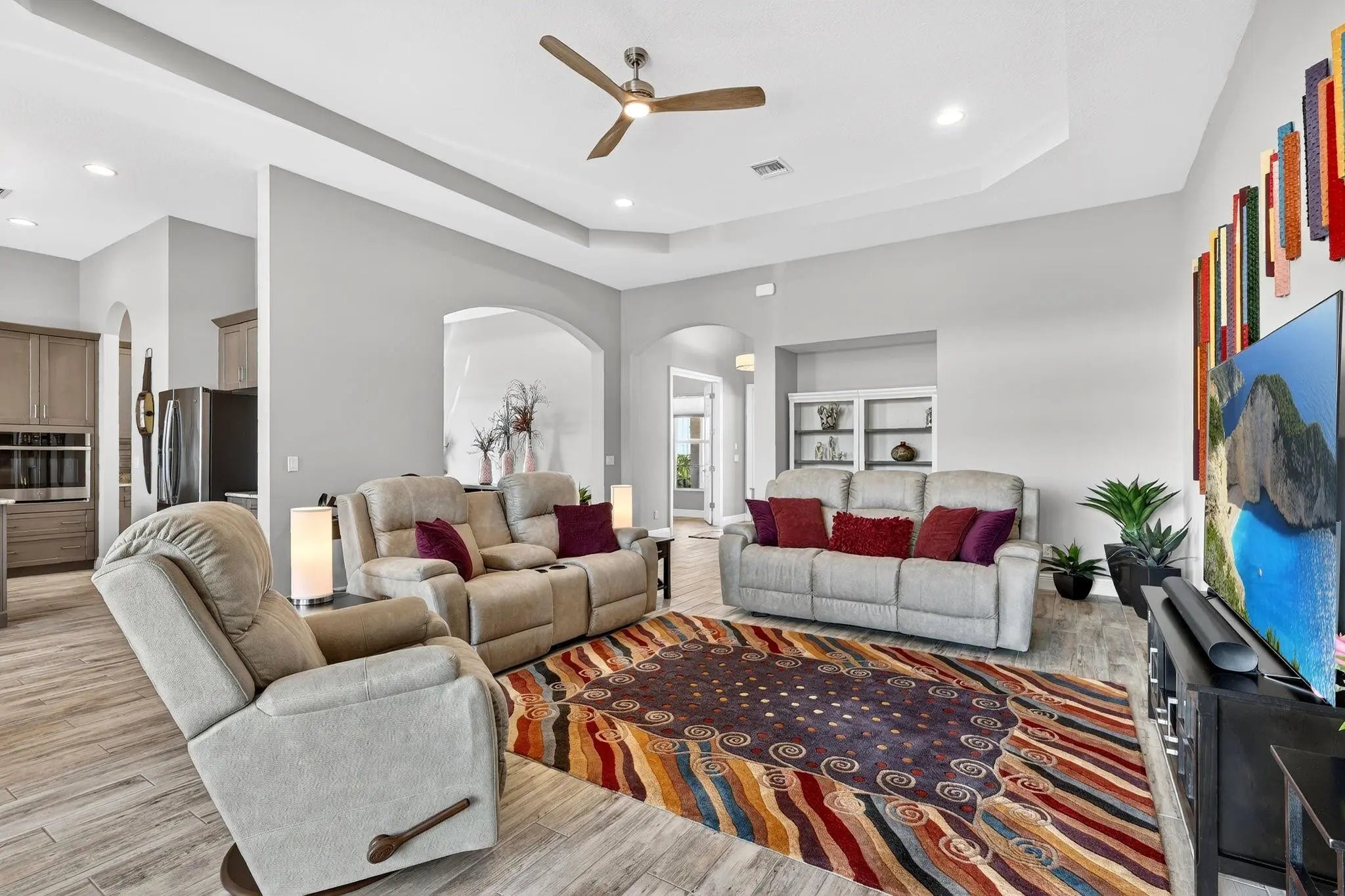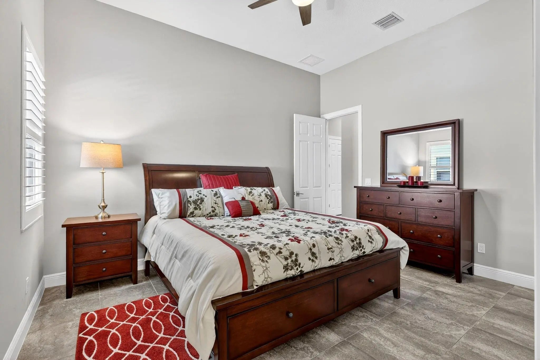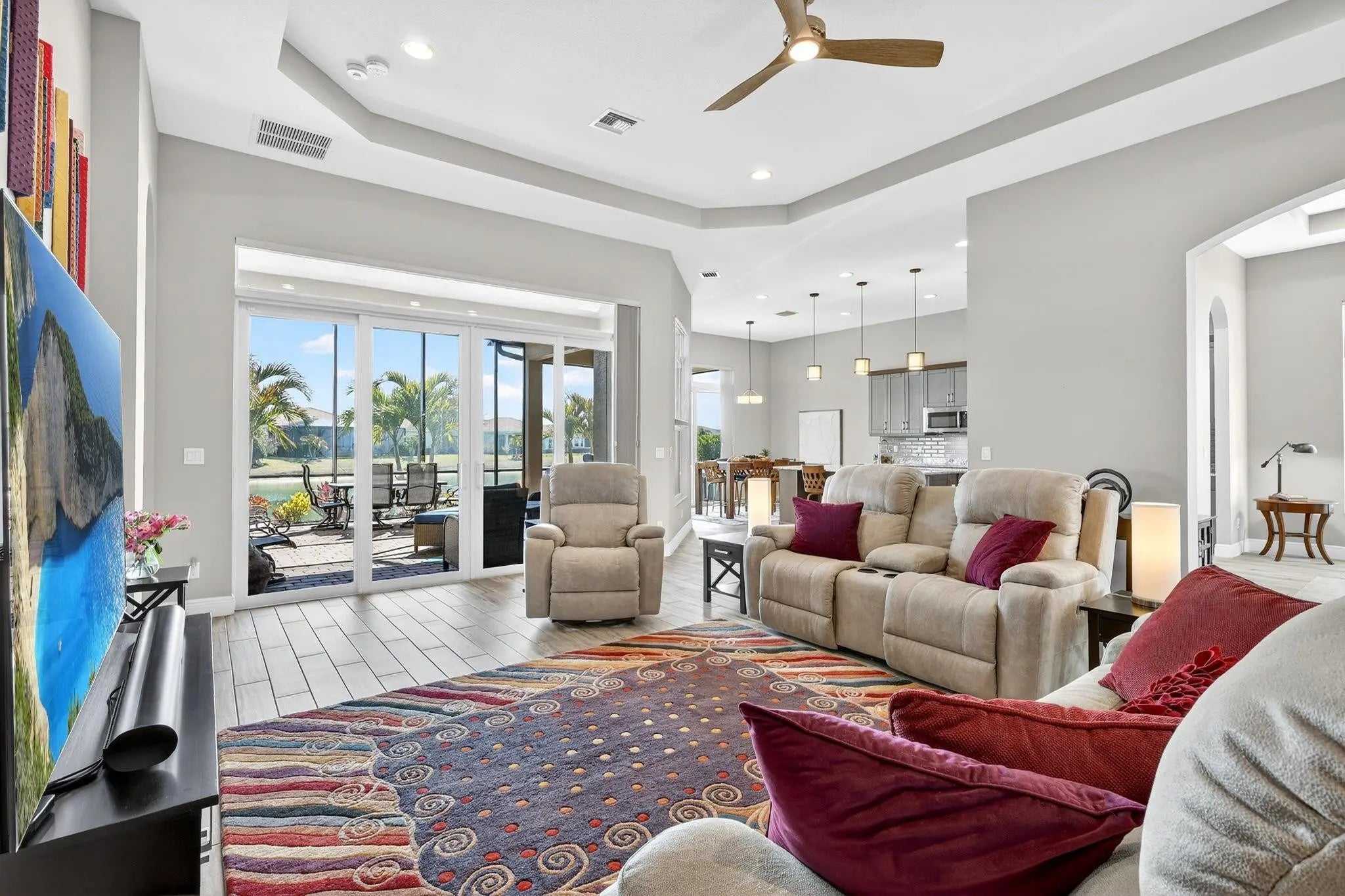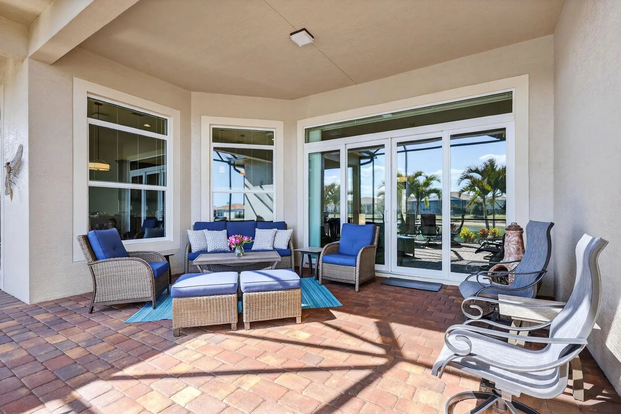Located in the gated community of PGA Verano this 2,758 SqFt Bellacerra model offers 3 bedrooms,each with an ensuite bath,office & half bath. Separate vanities in primary bathroom. Tile flooring throughout,custom light fixtures,plantation shutters & window shades. The kitchen is equipped with granite countertops,upgraded cabinetry,induction cooktop,refrigerator. The home includes hurricane impact windows/doors. Exterior features include an epoxy-coated 3-car garage,expanded driveway,screened patio overlooking the water with upgraded landscaping. Residents have access to amenities at Club Talavera, which include pools,fitness centers,pickleball, tennis,basketball,bocce,scheduled social activities. Optional golf membership provides private cart access to the 54-hole courses at PGA Golf Club.