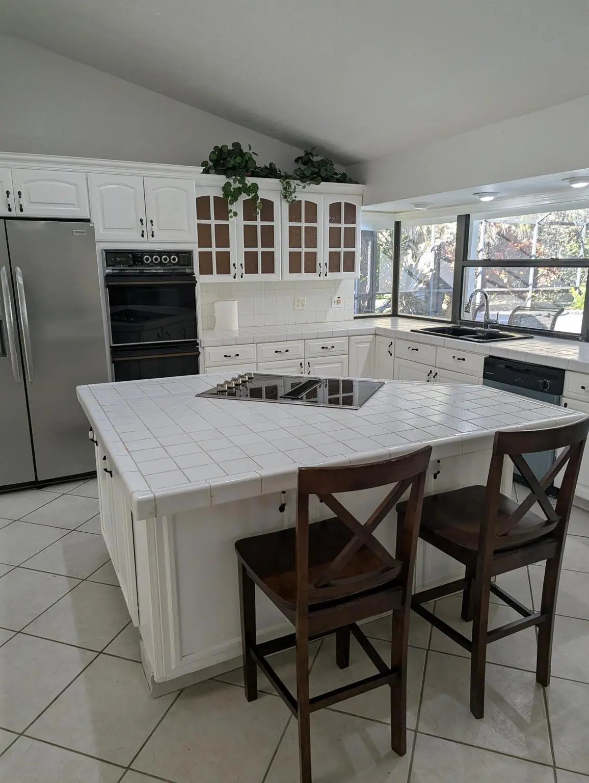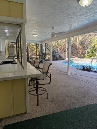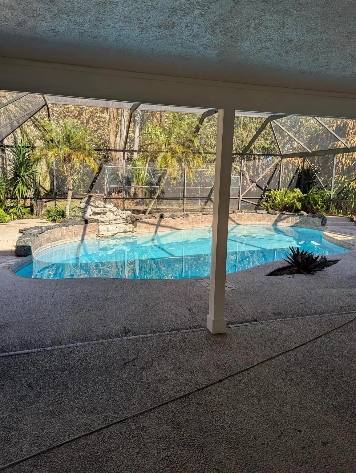 Private Florida oasis! This stunning 3-bedroom, 2.5-bath single-family home offers 2,200 sq ft of bright, comfortable living space on over a half acre fenced corner lot.Gorgeous screened-in pool with new screen enclosure & rock waterfallNew roof (house & garage) + 3 new sky lightsHuge circular driveway. Park 10+ carsDetached 2+ car garage with A/CBig living room with vaulted ceilings & cozy stone fireplaceBig bright kitchen with huge island and pass through window to poolFormal dining room for holidays & gatheringsMassive bonus room with its own separate entrance and half bath – easily convert to a 4th bedroom, playroom, den, or mother-in-law suiteCabana bathroom with shower leading to pool.Fenced yard with mature fruit trees and tall privacy hedges. Great layout & location.