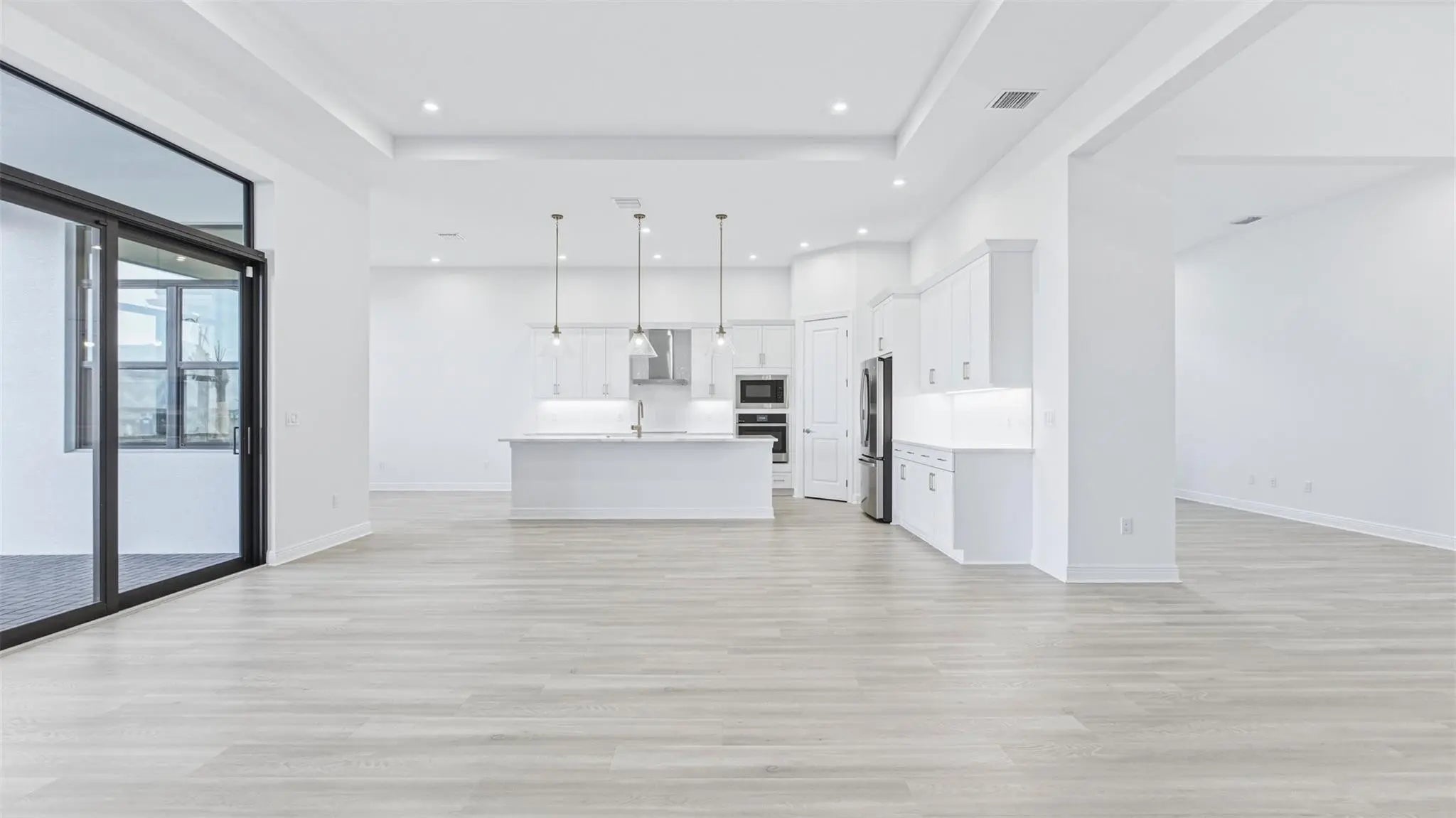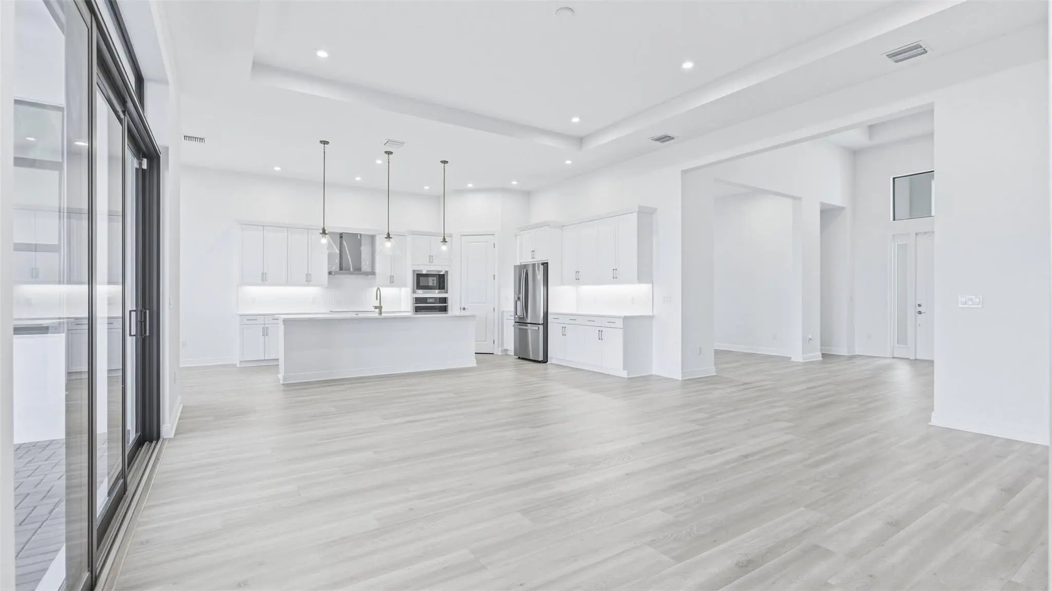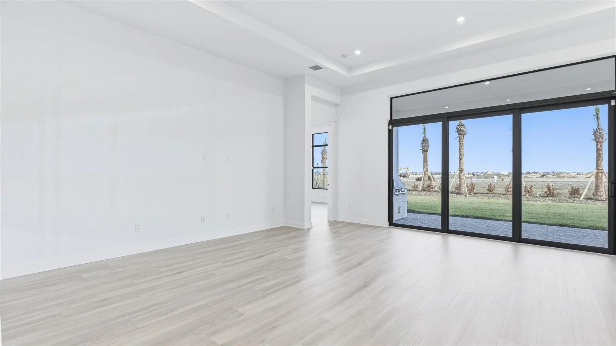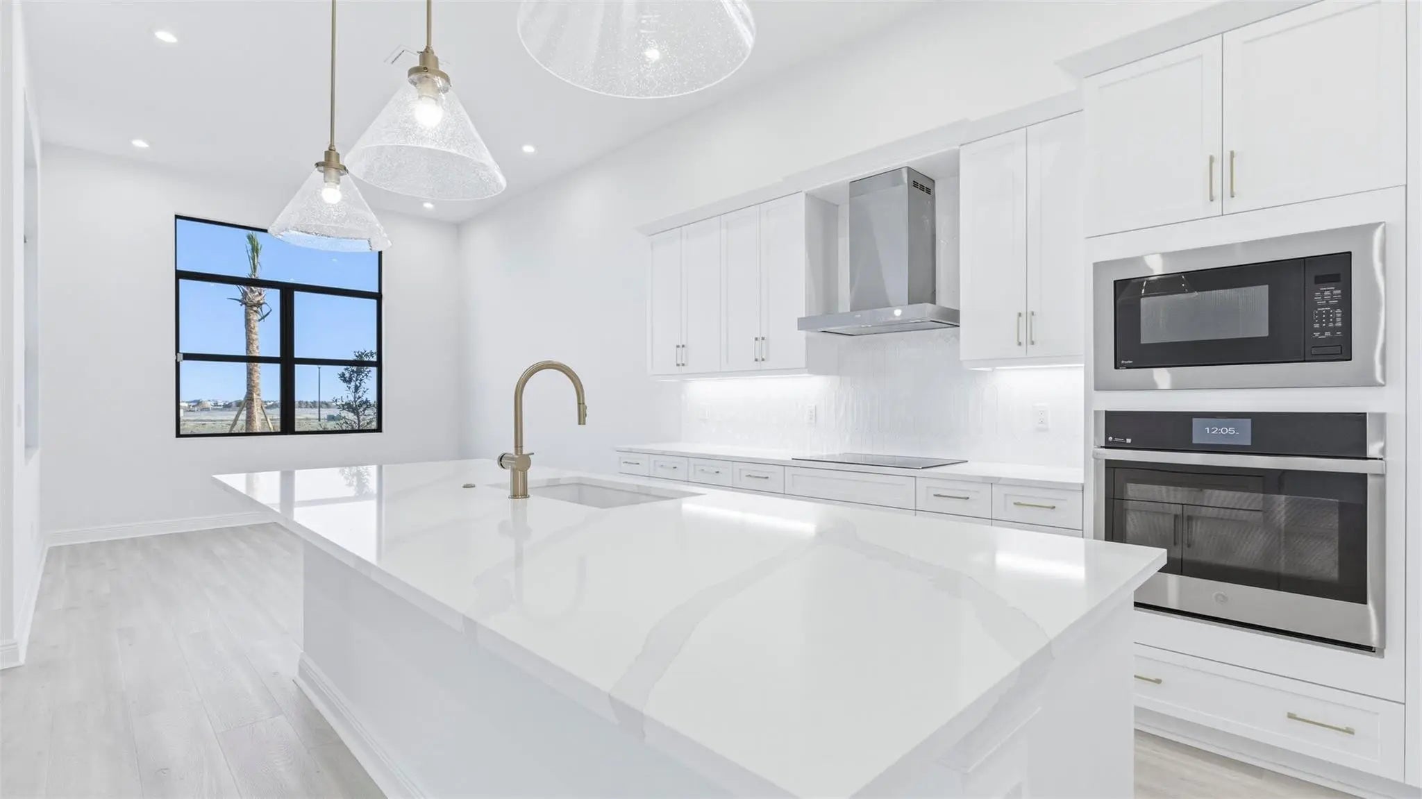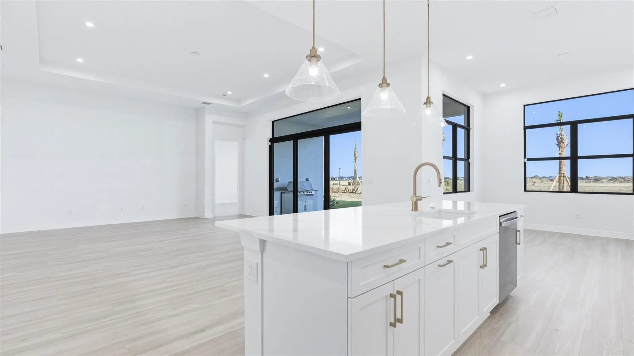 Move In Ready! Beautifully upgraded Riley features 3 beds/3.5 baths, flex room, and 2-car garage. The gourmet kitchen is equipped with GE Profile appliances. Upgraded laminated wood flooring runs through the main living areas and bedrooms, complemented by an upgraded lighting package. Owner’s bath offers a frameless glass shower for a modern, luxurious feel. Fully furnished laundry room includes wall and base cabinets, a quartz countertop, and a stainless steel undermount sink. Outdoor is enhanced with a full summer kitchen and a covered lanai. Additional features include aluminum gutters around the entire home, providing both style and durability. This home blends elegant finishes with practical upgrades.