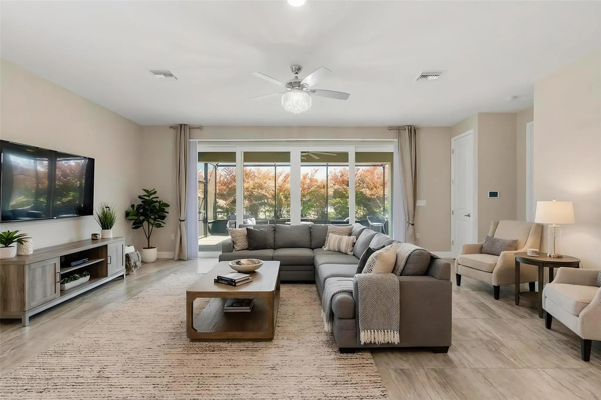 This Sandpiper model is ideally located at the end of the street for added privacy in a vibrant 55+ active lifestyle community. This is a 2 bedroom, 2 bath plus den/office with upgraded pocket doors. Tile flooring throughout, upgraded washer/dryer, Relax or entertain on the screened in birdcage enclosure over lanai. This home is partially furnished, there is a built-in Murphy bed in guest bedroom. Community amenities include pickleball, tennis, bocci, basketball, a clubhouse with restaurant and bar, a world class gym, indoor pool and multiple outdoor pools, a theater with live shows, plus pottery, art and cooking classes. Resort style living at its best