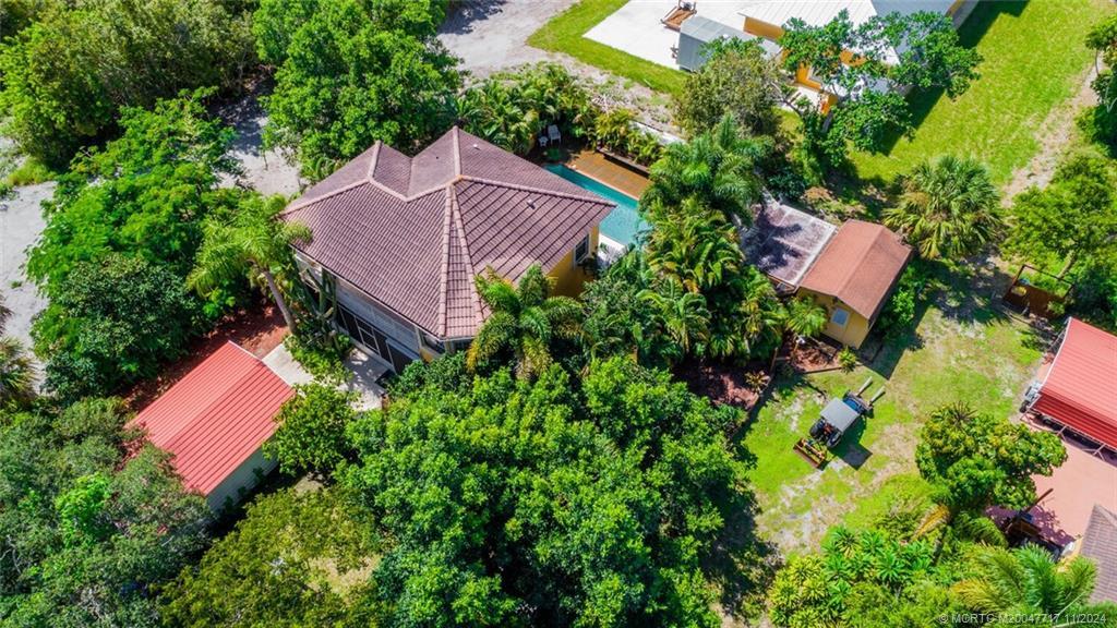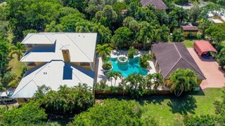 The Estate Home with Guest House is on a 7.25-acre parcel of Riverfront land, with a 460' walk-out dock. Very Private Estate Home with attached 2 car garage set back over 250'. Plus 2 Separate Large Garages perfect for Car collection,3 car detached garage with A/C, gym & bath, CBS 32X55, plus a new 5 car garage 72' X 32' with apartment, full A/C. High & Dry w/30 ft elevation ''per owner''. Main House 4600 under a/c 6,400 total. 10 ft ceiling Height,3 stories, 4 beds, 4 baths, Granite Counters Kitchen & Baths, Double Oven, Media Room, Covered Balconies front and rear, Newer Aluminum Roof, Impact Windows 2nd & 3rd Floors, Electric Hurricane Panels first floor, 60,000-gallon free form resort salt water pool w/Spa, Horses OK