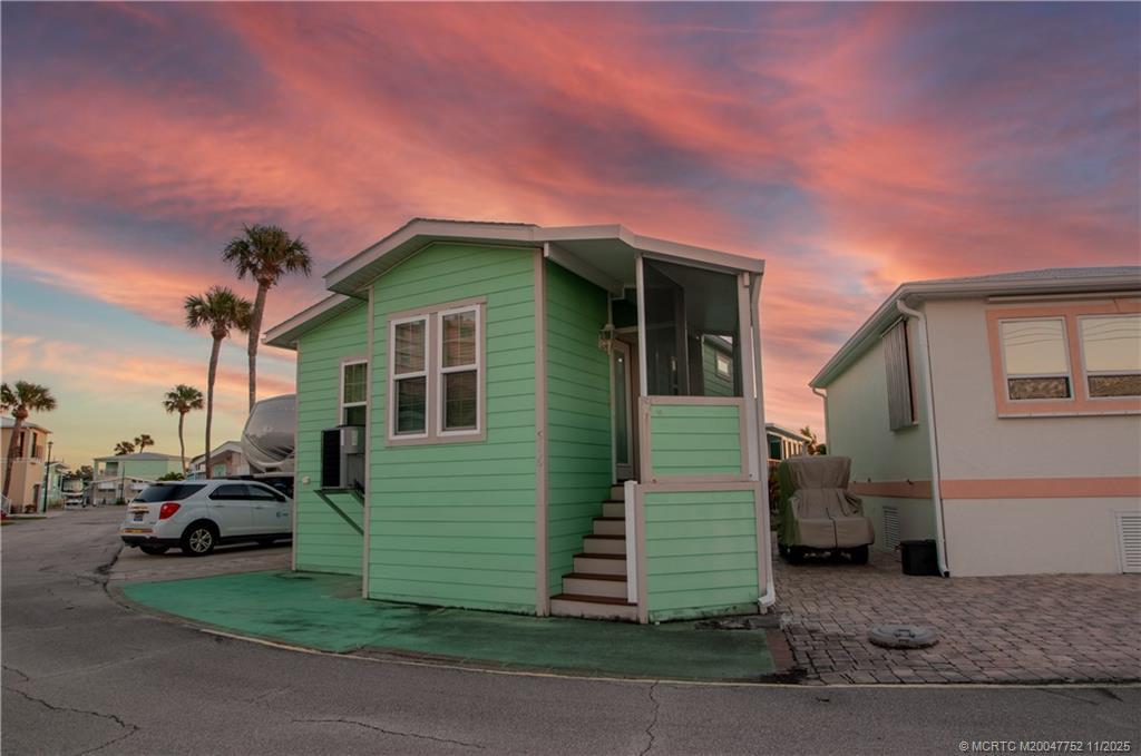 A true MODULAR built hοme fοr under 300k οn Hutchіnson Island, just stеpѕ from the ocean with private beach access and an underground tunnel! Less than 10 years old and CAN BE FINANCED! Rare and exceptional deal at this price point. Hardie siding, screened in porch, tankless water heater. #516 is a 2 bed, 2 bath home that offers the perfect blend of laid-back island living and active fun. Holiday Out also features beach-side amenities like an oversized pool, pickleball courts, shuffleboard, bocce ball, horseshoes, clubhouse, and so much more! You even have access to rent a boat slip in the adjoining community's private marina. What an incredible amenity!!! Local restaurants and shops are within walking distance or just a short golf cart ride away. Discover the joys of island life—where every day feels like a vacation! Schedule a showing today and make this fun, coastal community your new home.
