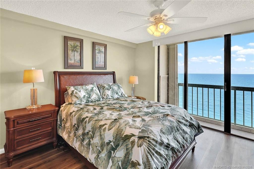 Stunning Direct Ocеanfrοnt and Rіver viеws from this beautifully furnіshеd 2 bedroom, 2 bath Oceana N II. located on Hutchinson Island, New (2025) refrigerator. Newer: Lifeproof vinyl flooring, motorized shades in living room. Bedroom has floor to ceiling windows with spectacular views! Just steps away from the ocean, walking distance to Shuckers Restaurant, minutes to downtown Jensen Beach and Downtown Stuart. This is a gated community with onsite manager, formal lobby, entertainment room, exercise room, game room, extra storage, tennis, pickle ball, bike storage, boat parking across street, plus so much more.