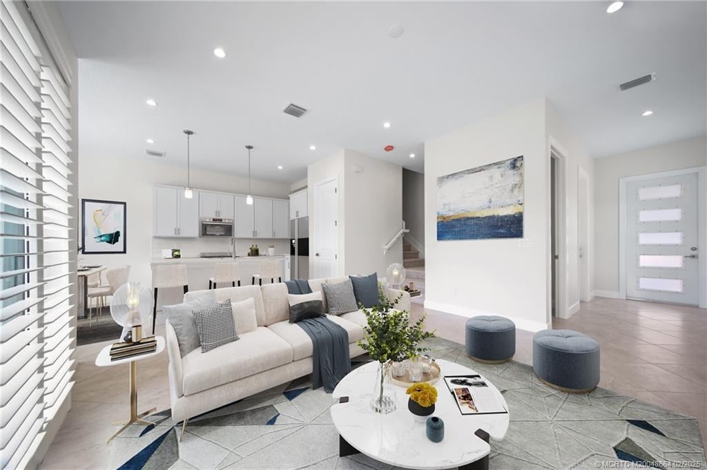 ASK about optional builder incentives! Stunning new construction townhome featuring 3/2.5/2 car garage. Prime Palm City location, featuring: 10' ceilings downstairs, 9'4" upstairs, 8-ft doors, CBS Construction on both levels, LVP Flooring in living areas, low-Impact Glass windows for added protection & energy efficiency, beautiful paver driveway, private Balcony off the master suite and a covered patio ideal for enjoying some of Florida's most beautiful weather. The island kitchen features sleek Quartz countertops, white shaker cabinets with soft-close doors, bar seating & stainless steel GE Appliances. Move in Ready! Special Financing Available! Builder-paid rate buydown available: 4.99% fixed rate (5.13% APR) or 3/2/1 buydown starting at 3.99% (7.24% APR) with approved lender. 30-year fixed conventional loan, 80% LTV. Buyer must qualify and use preferred lender. Rate subject to credit approval and market conditions. Offer valid through 2025. Terms subject to change.