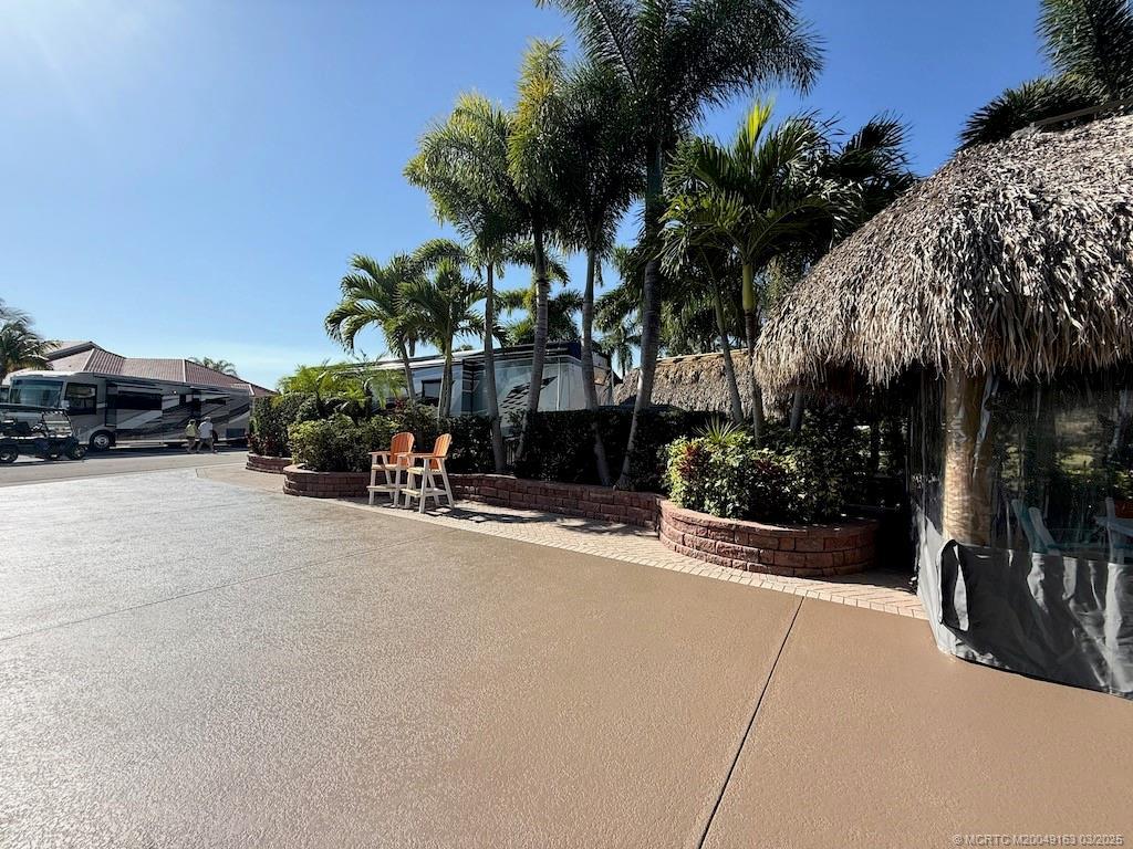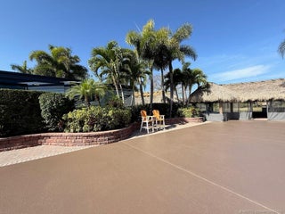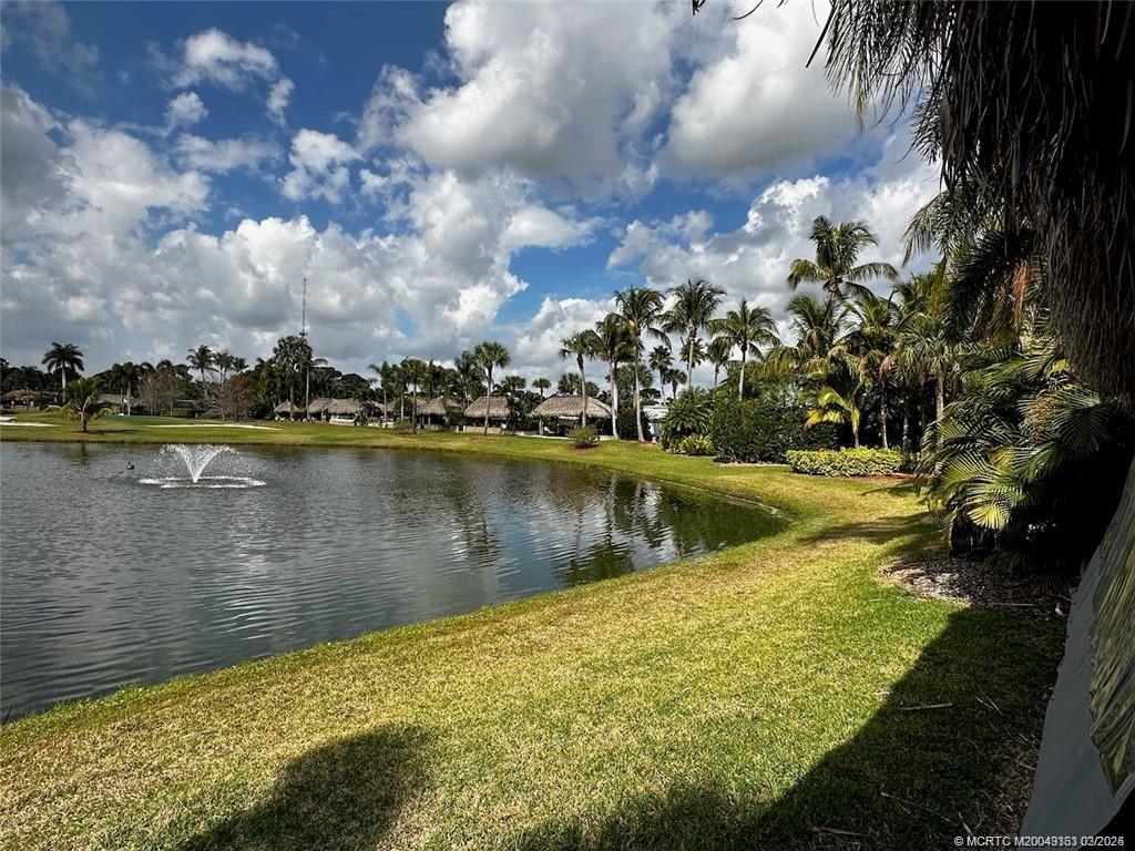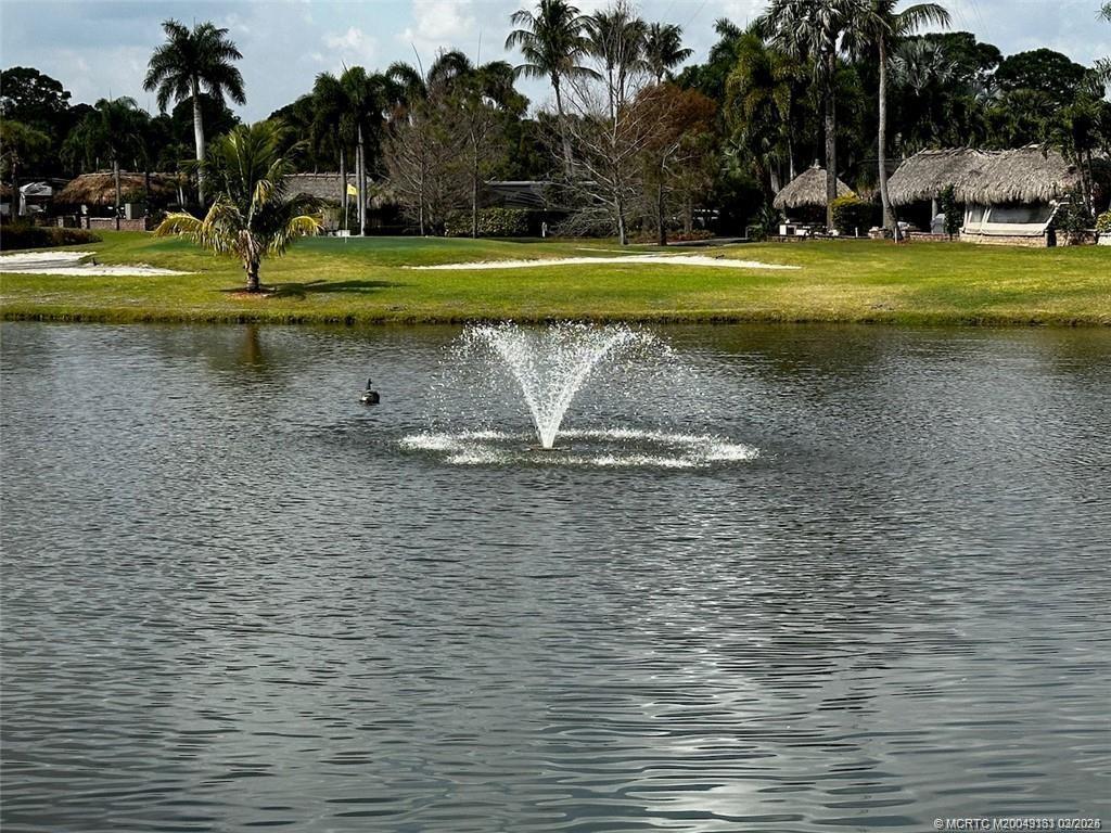 Elevate your lifestyle with this exceptional offering - where view and location converge to create the ultimate living experience. Behold panoramic vistas of the serene lake, adorned with enchanting water fountains, providing a picturesque backdrop for mesmerizing sunsets. Additionally, the breathtaking panorama of the adjacent golf course, ensures a feast for the eyes at every turn. Positioned strategically, this property enjoys unparalleled convenience, directly opposite the clubhouse, pool, hot tub, and tennis court, while also being in close proximity to the delightful doggie park. Delight in the meticulously landscaped surroundings, featuring mature greenery accentuated by charming raised landscape beds and elegant pavers arranged in a timeless herringbone pattern. The large tiki hut offers both entertainment and functional outdoor space and recent enhancements include the new marine grade cabinetry. Fully furnished, this move-in-ready gem promises worry-free outdoor living.