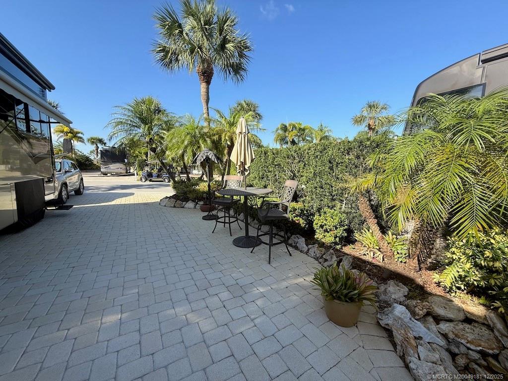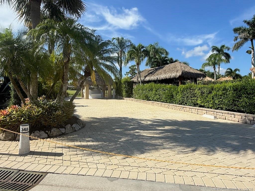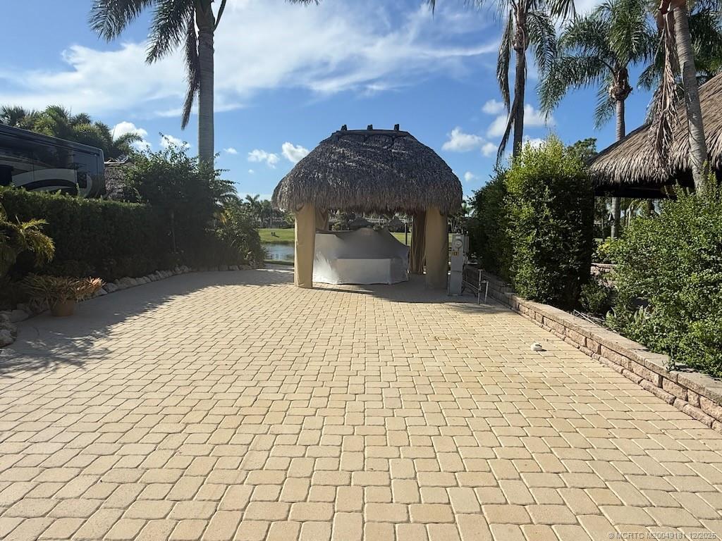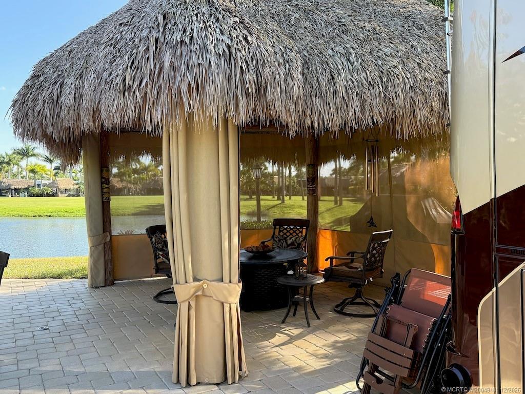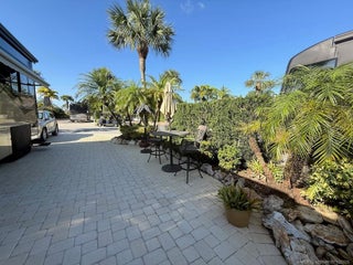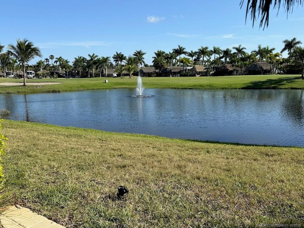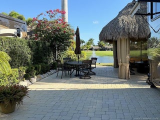 Stunning Waterfront Lot wіth Brеathtаking Viеws – A MUST SEE! Τhiѕ fully pavered, meticulously maintained waterfront lot offers the perfect blend of luxury, privacy, and scenic beauty. Nestled in a prime location, it boasts unmatched views of the golf course, lake with its lighted fountain, serene waterfall, and charming wooden bridge leading to the 17th hole. The secluded tiki hut is designed for all-weather enjoyment, featuring screen curtains and and offering a private, comfortable seating area. Multiple seating and dining areas provide ample space for entertaining or relaxing in a tranquil setting. Mature landscaping, including several majestic palms and even a private pond, enhances the tropical ambiance. With its ideal north-facing orientation, you'll enjoy perfect sun exposure throughout the day. Move-in ready and truly one-of-a-kind, this waterfront gem is waiting for you! Don’t miss this opportunity—schedule a tour today!