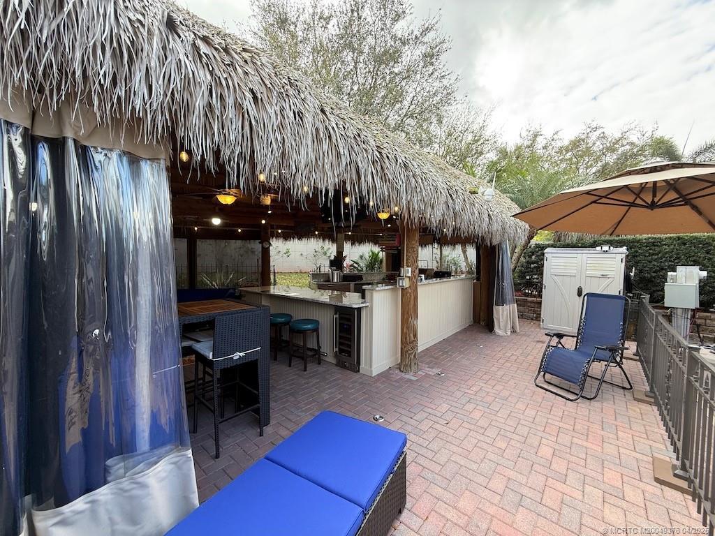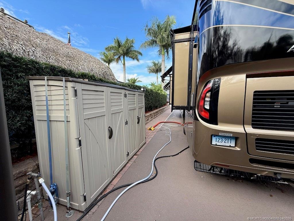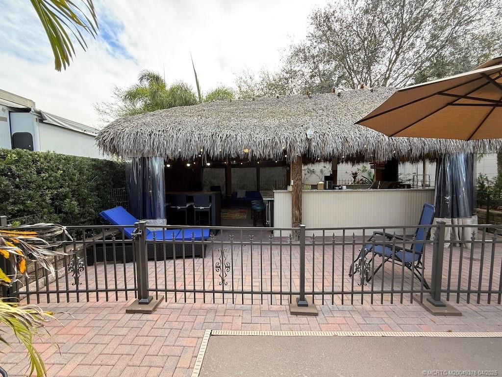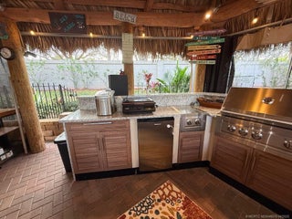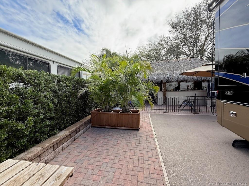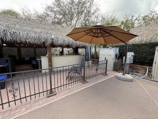 REDUCED! A Chef's Dream іn Pаradіse! Ꮮove entertaining? Lοokіng for privacy? This expansive lot is a true culinary oasis, designed for those who love to cook and entertain. The state-of-the-art outdoor kitchen is fully equipped with a grill, cooktop, dishwasher, refrigerator, and wine chiller, making it perfect for hosting. Expansive granite countertops provide ample prep and serving space. The beautifully furnished tiki features comfortable seating, a large screen TV with sound bar, and boasts additional seating for six at the raised card table for game night. The tiki has both screens and isenglass curtains for year-round enjoyment, with both ceiling fans and three overhead heaters to handle any weather. If it’s privacy you’re looking for this lot backs to a wall and is surrounded by lush, meticulously maintained landscaping. Perfect for your furry friends with fencing around the entire tiki, there’s even a grassy area in the rear for potty breaks. Priced competitively at $198,000.
