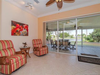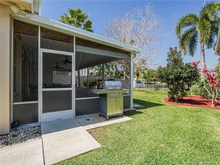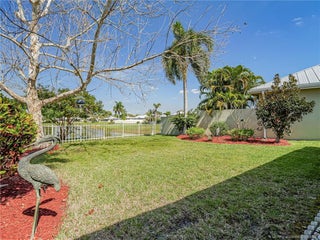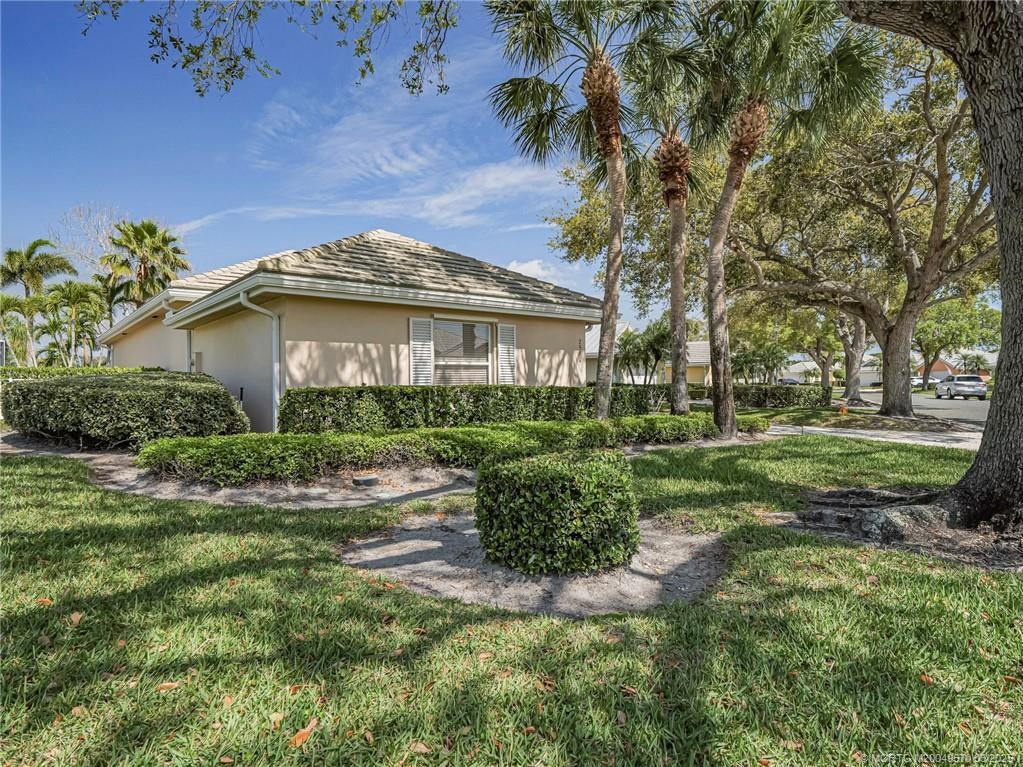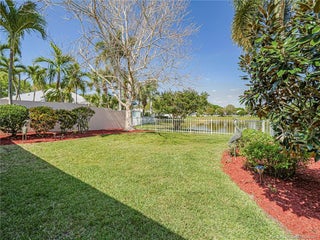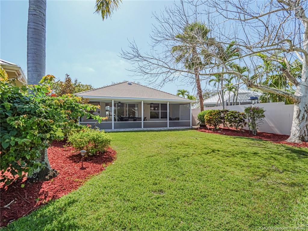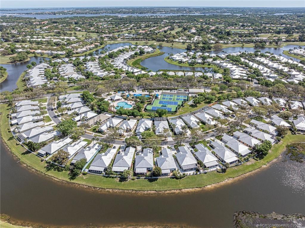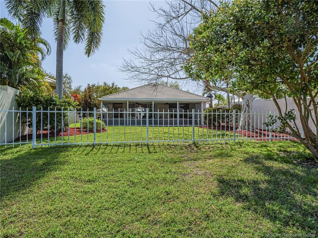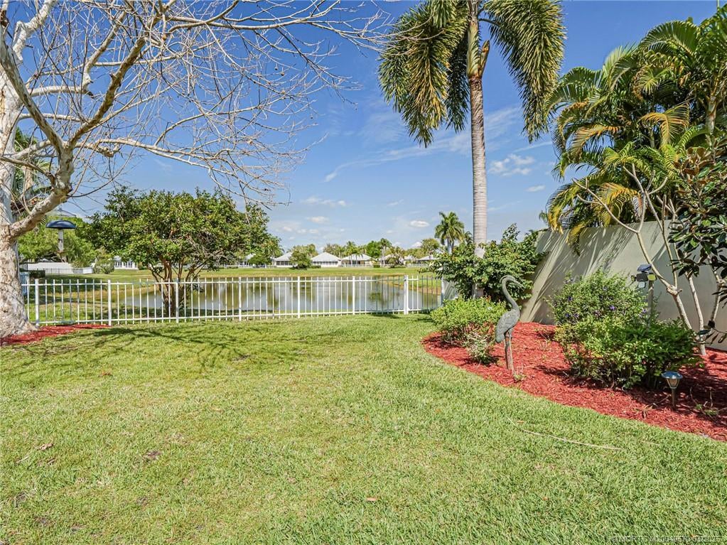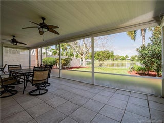 PRICE IMPROVEMENT! This turnkey Divosta 3BR/2BA CBS home sold fully furnished in the sought after gated community of The Meadows shows like a model. The custom glass double doors open to a spacious and bright living area & a waterfront view from your expansive screened lanai. The tastefully remodeled kitchen boasts artisan crafted cherry cabinets, granite countertops & new stainless appliances. Both baths have also been renovated with gorgeous tile & fixtures. The huge en suite shower is spa like. Additional features include crown molding, Ceramic tile flooring throughout, full size laundry w sink, new washer & dryer & central vac. Flat tile roof 2015. There is also room for a pool in the private fenced backyard. The family friendly Meadows offers a community pool, tennis/pickleball, rec area & much more! Take a drive down the beautiful oak lined streets of the Meadows to see your new home! In the heart of Palm City, close to shopping, great restaurants, 95 & Turnpike access.