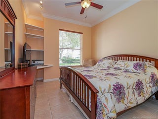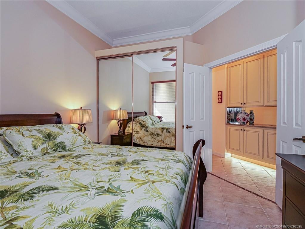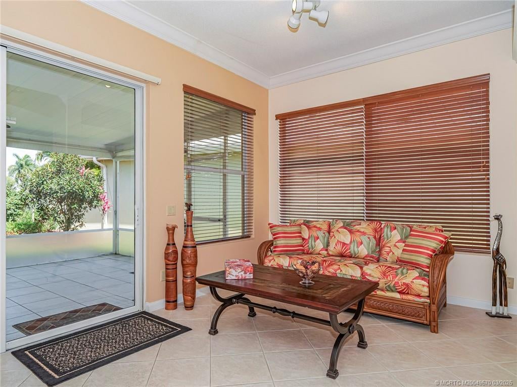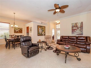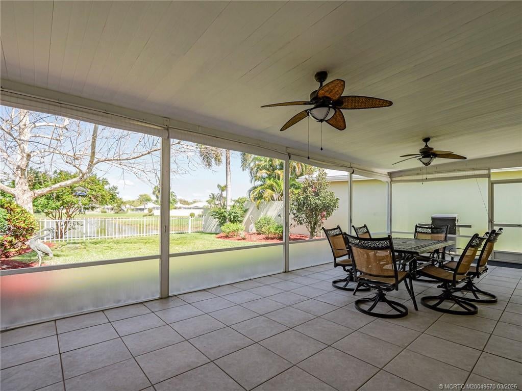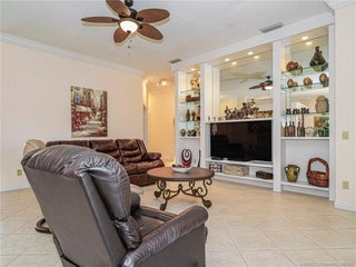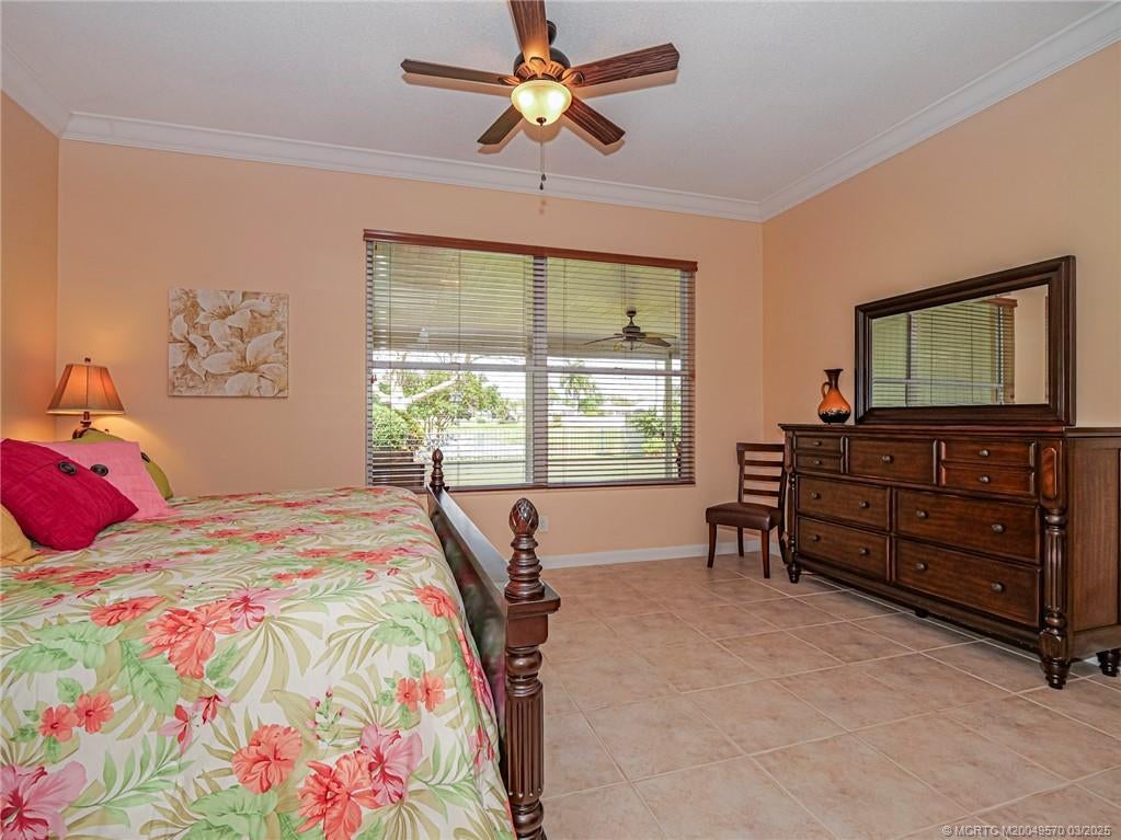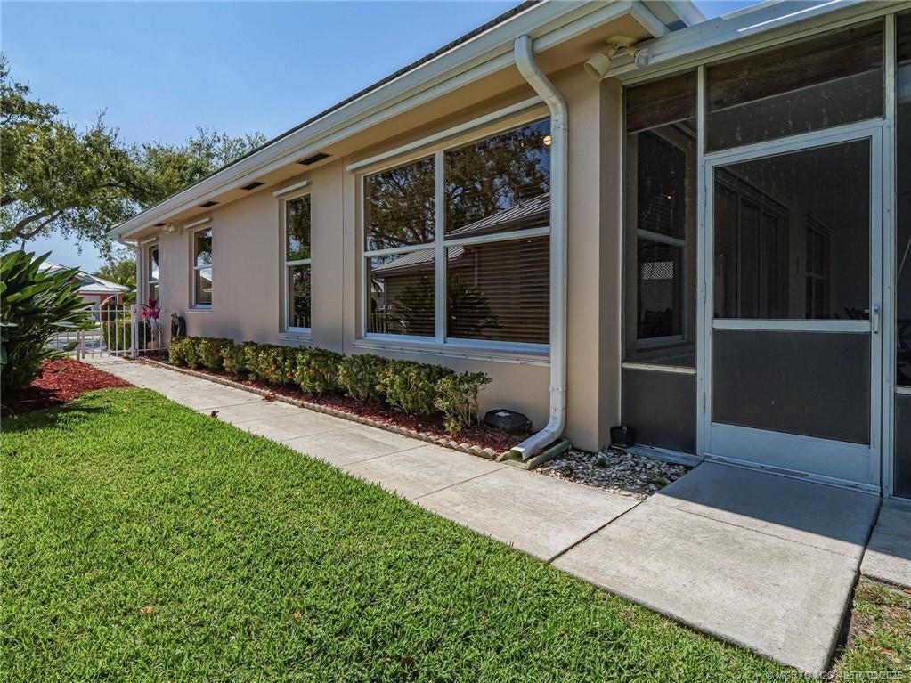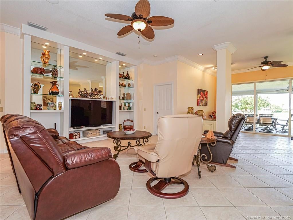 PRICE IMPROVEMENT! This turnkey Divosta 3BR/2BA CBS home sold fully furnished in the sought after gated community of The Meadows shows like a model. The custom glass double doors open to a spacious and bright living area & a waterfront view from your expansive screened lanai. The tastefully remodeled kitchen boasts artisan crafted cherry cabinets, granite countertops & new stainless appliances. Both baths have also been renovated with gorgeous tile & fixtures. The huge en suite shower is spa like. Additional features include crown molding, Ceramic tile flooring throughout, full size laundry w sink, new washer & dryer & central vac. Flat tile roof 2015. There is also room for a pool in the private fenced backyard. The family friendly Meadows offers a community pool, tennis/pickleball, rec area & much more! Take a drive down the beautiful oak lined streets of the Meadows to see your new home! In the heart of Palm City, close to shopping, great restaurants, 95 & Turnpike access.