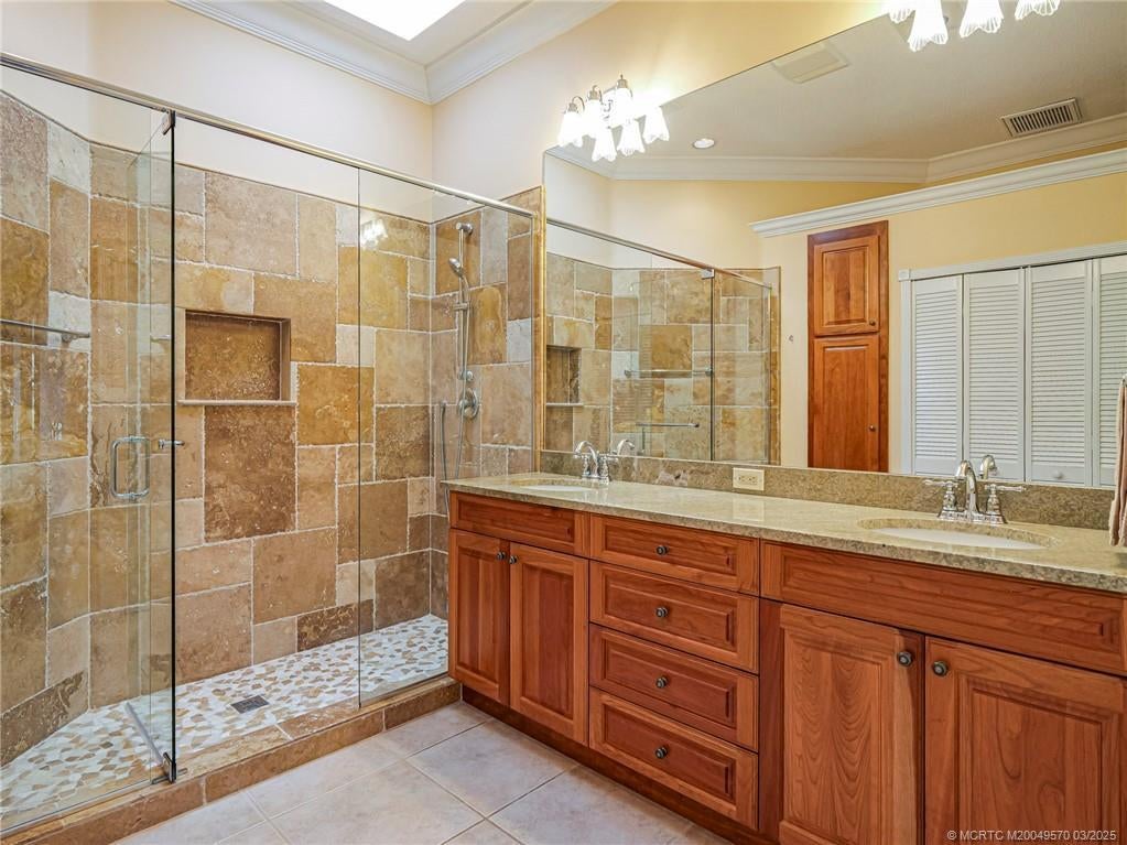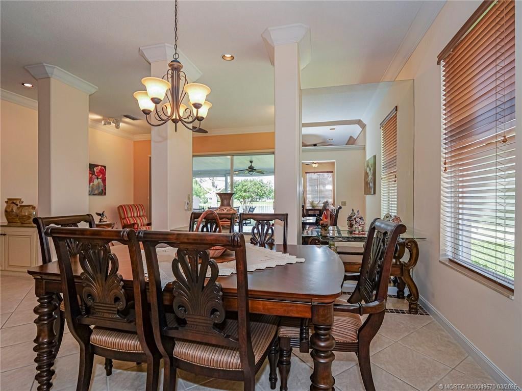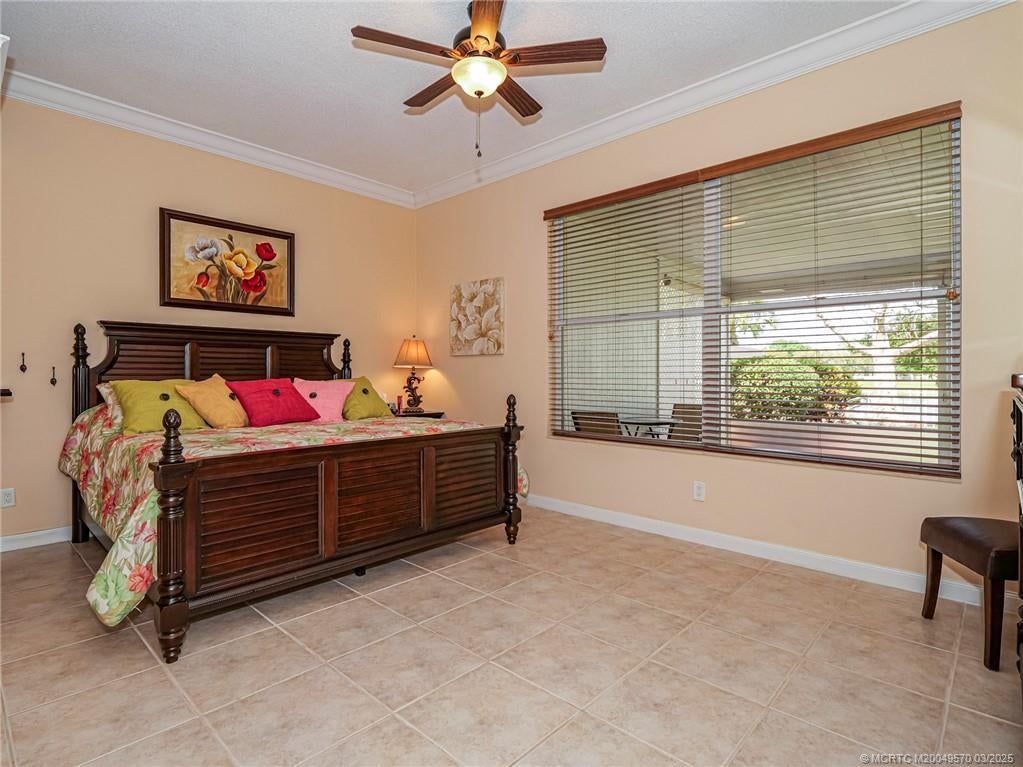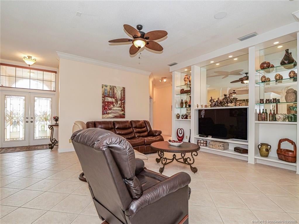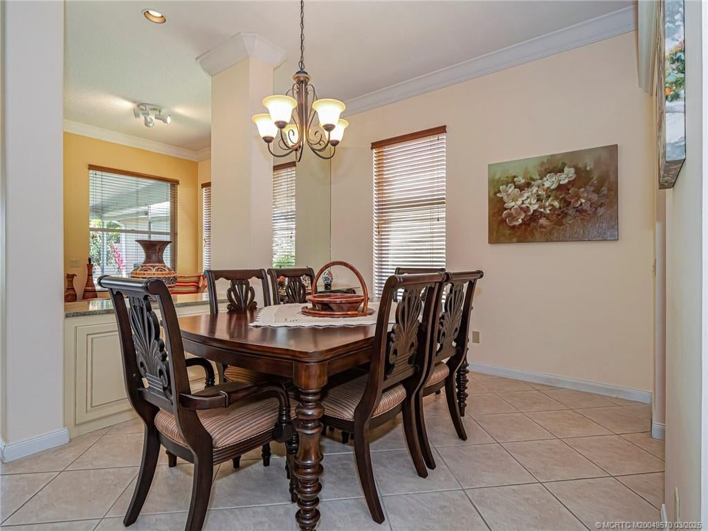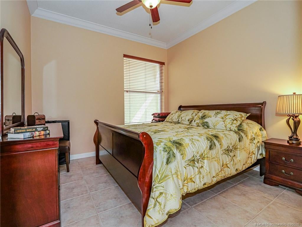 PRICE IMPROVEMENT! This turnkey Divosta 3BR/2BA CBS home sold fully furnished in the sought after gated community of The Meadows shows like a model. The custom glass double doors open to a spacious and bright living area & a waterfront view from your expansive screened lanai. The tastefully remodeled kitchen boasts artisan crafted cherry cabinets, granite countertops & new stainless appliances. Both baths have also been renovated with gorgeous tile & fixtures. The huge en suite shower is spa like. Additional features include crown molding, Ceramic tile flooring throughout, full size laundry w sink, new washer & dryer & central vac. Flat tile roof 2015. There is also room for a pool in the private fenced backyard. The family friendly Meadows offers a community pool, tennis/pickleball, rec area & much more! Take a drive down the beautiful oak lined streets of the Meadows to see your new home! In the heart of Palm City, close to shopping, great restaurants, 95 & Turnpike access.