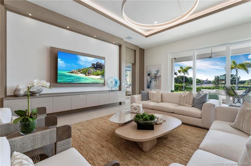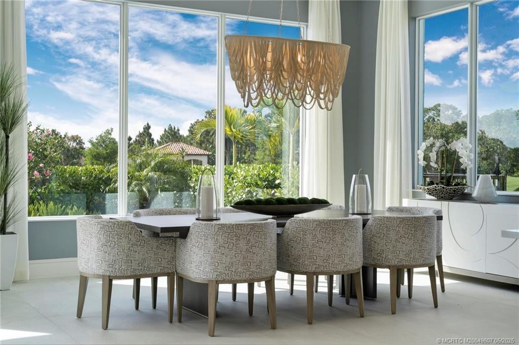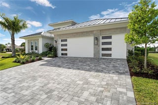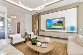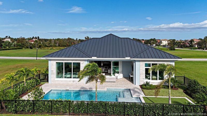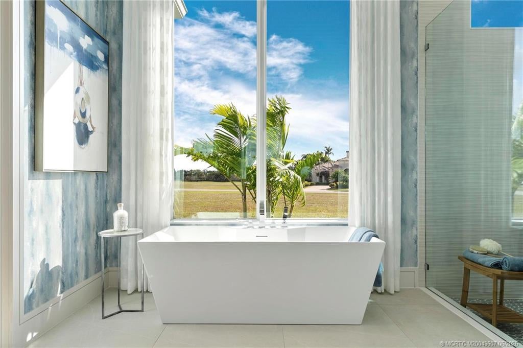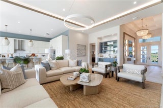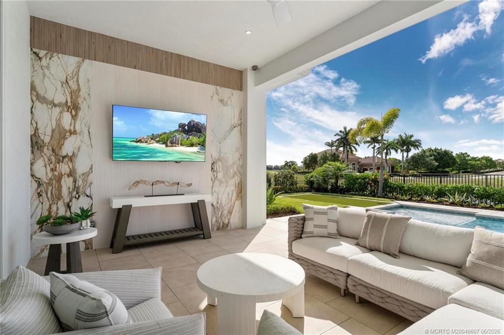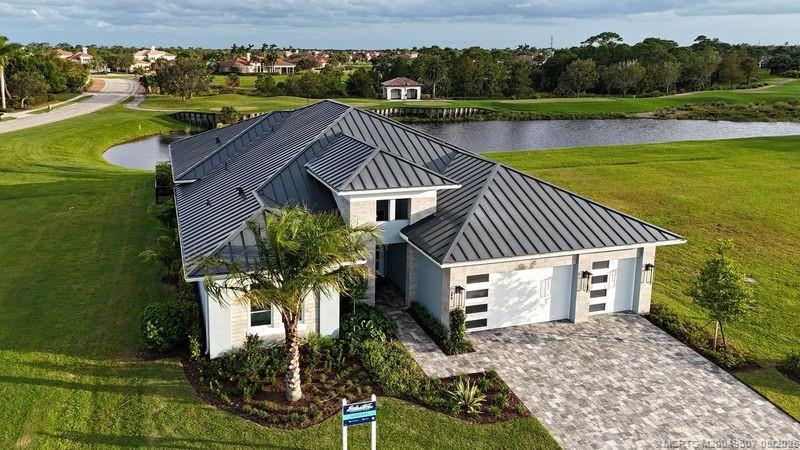 As you enter the gates of Tesoro, you are welcomed into a realm of luxury living. Elevate your lifestyle with a beautifully appointed model home from Ecclestone Signature Homes, featuring breathtaking views of the golf course and serene water. This residence offers three bedrooms, along with a den or flexible space, and is adorned with high-quality upgrades and finishes. The Coastal Modern Design promotes an open-concept layout with soaring ceilings, creating an ideal environment for entertaining. A spacious patio, complete with a custom-built TV wall, enhances outdoor living. With impact windows and doors throughout, homeownership is effortless. This residence has been meticulously decorated by one of South Florida's most esteemed designers, making it a true turnkey opportunity.