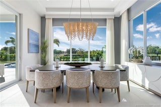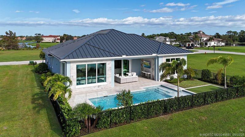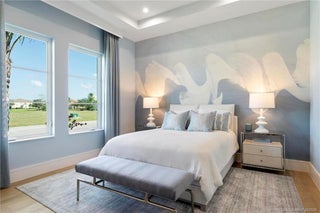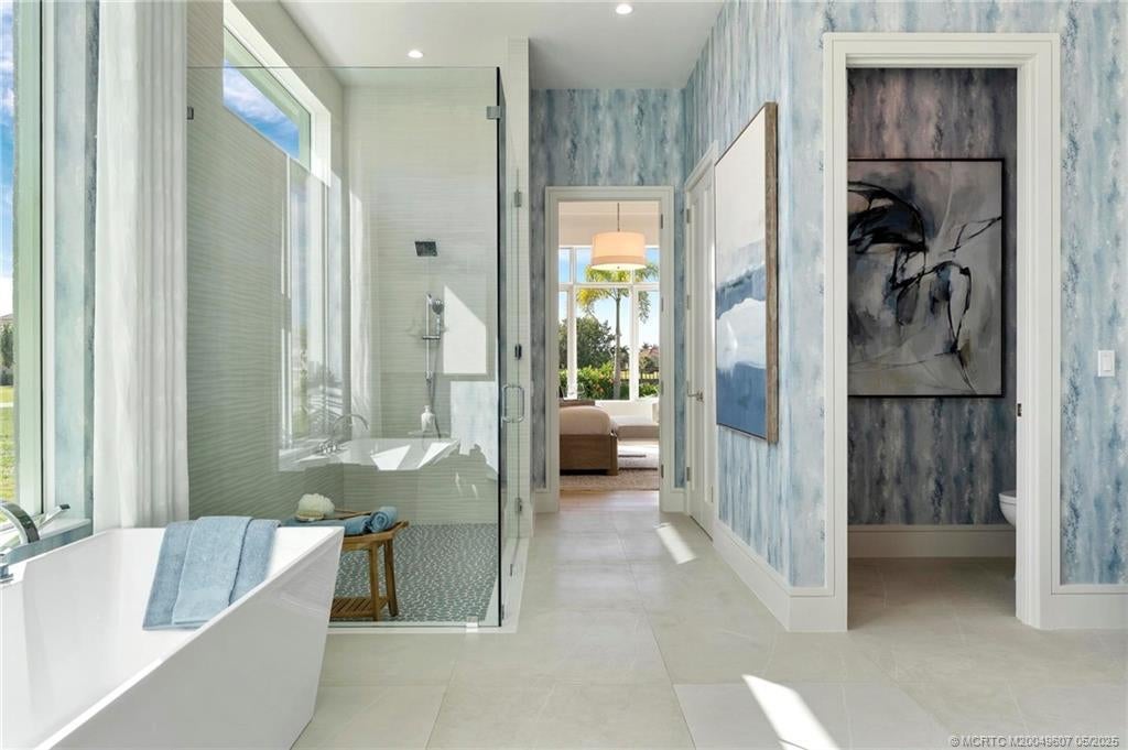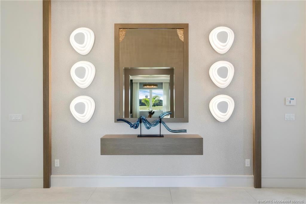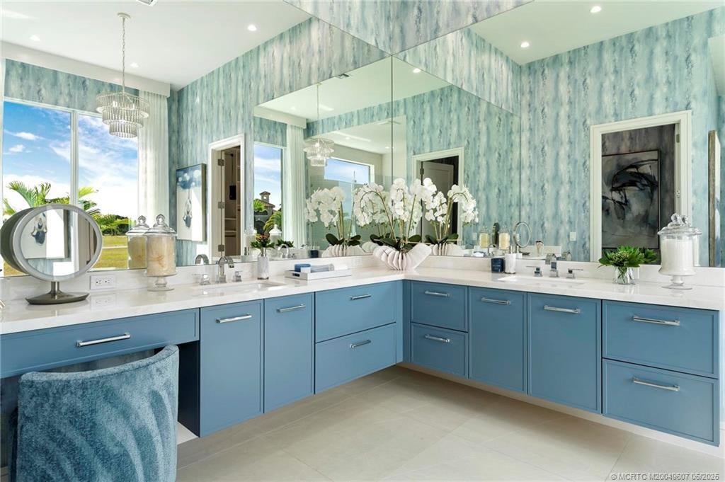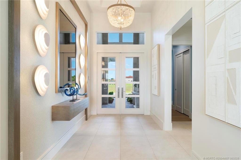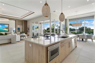 As you enter the gates of Tesoro, you are welcomed into a realm of luxury living. Elevate your lifestyle with a beautifully appointed model home from Ecclestone Signature Homes, featuring breathtaking views of the golf course and serene water. This residence offers three bedrooms, along with a den or flexible space, and is adorned with high-quality upgrades and finishes. The Coastal Modern Design promotes an open-concept layout with soaring ceilings, creating an ideal environment for entertaining. A spacious patio, complete with a custom-built TV wall, enhances outdoor living. With impact windows and doors throughout, homeownership is effortless. This residence has been meticulously decorated by one of South Florida's most esteemed designers, making it a true turnkey opportunity.