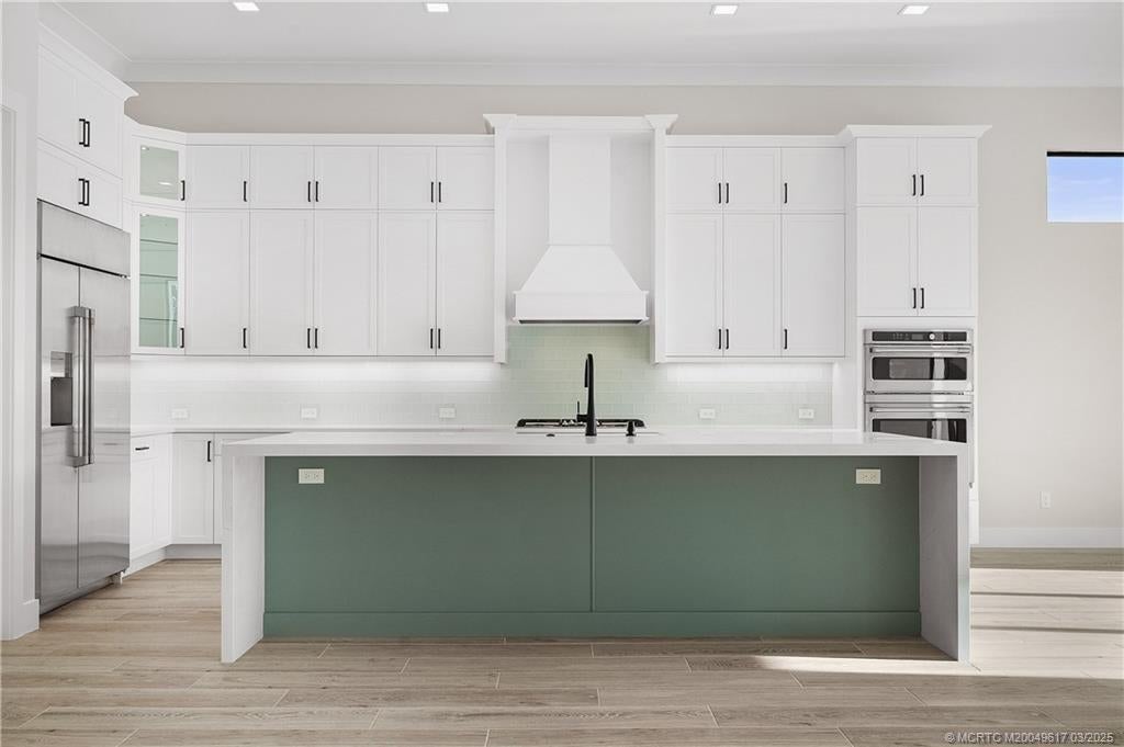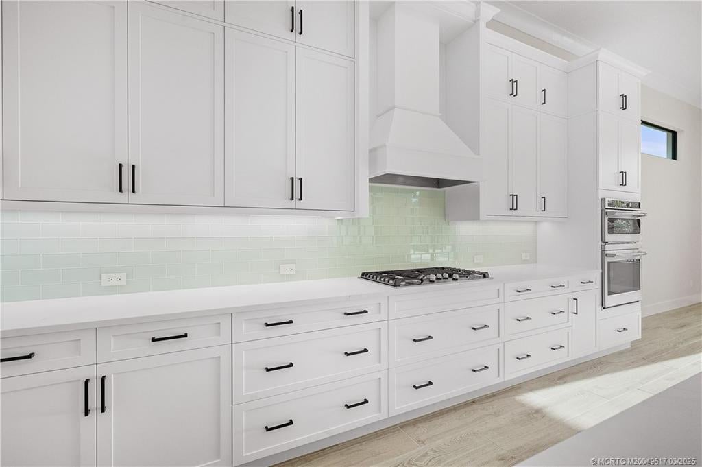 This Coastal Modern offering from GHO Homes with fantastic amenities is now available. Expansive twelve ft. high ceiling with oversized storm guard windows & doors announce you have arrived. Family room, kitchen, dining, club room, covered patio and pool create a one of kind living experience. The kitchen features Cafe series appliances, natural gas cooktop, 42'' double door frig., build in convection wall oven, quartz counter tops, stacked upper cabinets with glass accent doors. The primary suite features a morning bar, a Carrie Bradshaw style display closet with custom shelfs, a 2nd walk-in, 12 ft high tray ceiling & is privately located on its own wing. Primary bath has double vanities, soaking tub & premium shower. Two Guest suites each have private baths & Walk-in closets.