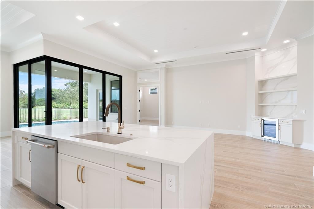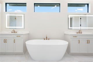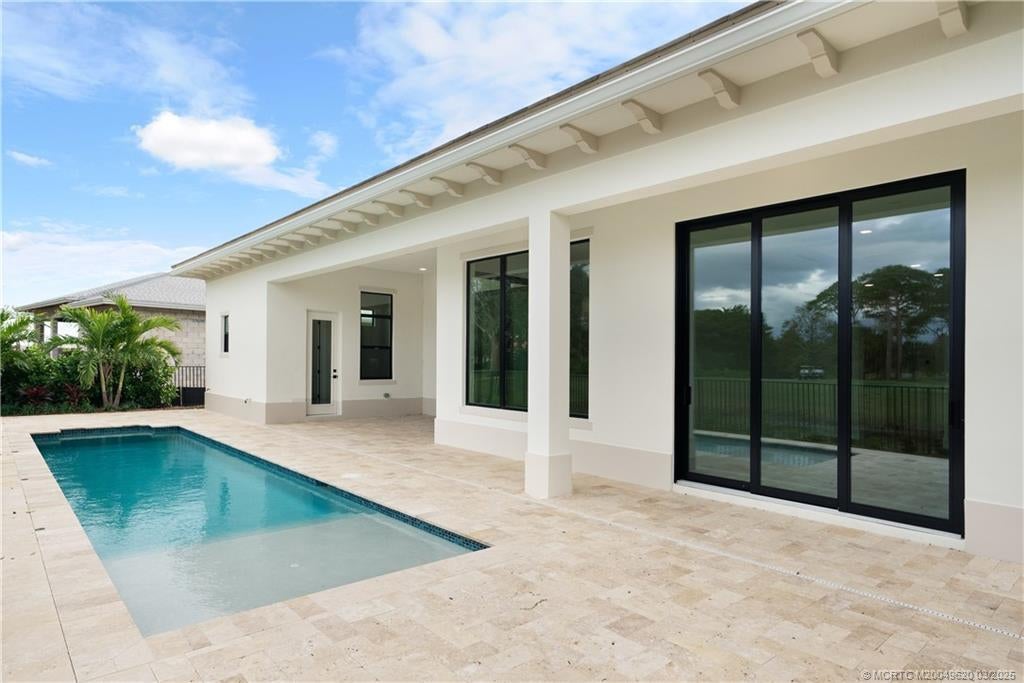 Refined living at its best in this Coastal Modern offering by GHO Homes. Featuring twelve ft. high ceiling with oversized storm guard windows & doors along with a large covered patio overlooking the pool. Family room, kitchen & dining create a one of kind living experience. Club room with full cabana bath is ideal for play or could be a 4th Bedroom. The kitchen features: Cafe series appliances, natural gas cooktop, 42'' double door frig., build in convection wall oven, quartz counter tops, stacked upper cabinets with glass accent doors along with walk in pantry. The primary suite feature, two closets with custom shelfs, 12 ft high tray ceiling, oversized sliding door with access to covered patio/pool area. Primary bath has two vanities, soaking tub & premium shower. Move in ready home.