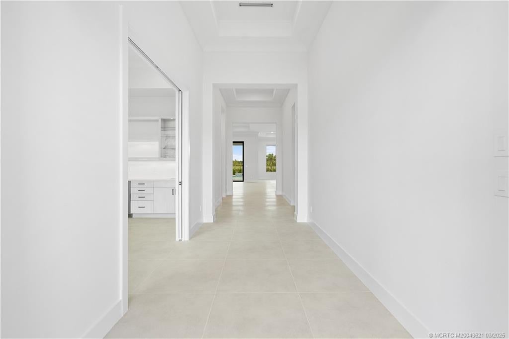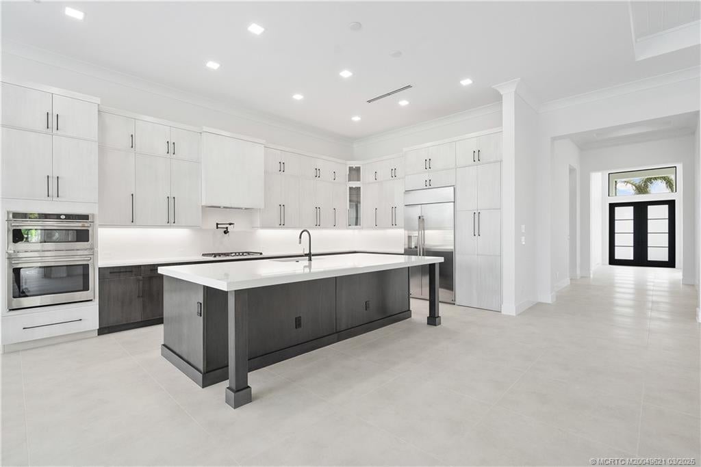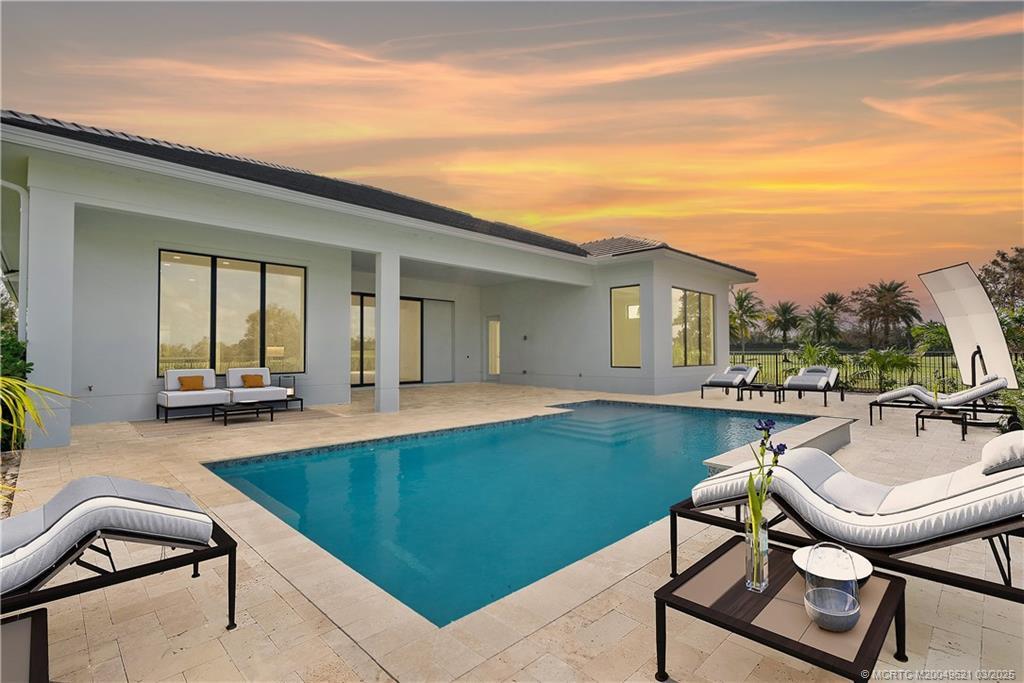 This home is located in the heart of "Tesoro", the Treasure Coasts premier golf club. The "Keenan" presents the perfect design and layout that enhances that Florida lifestyle. Entertaining at its best with a large oversized back covered patio including travertine pavers and a professionally designed pool enhanced with sun shelf and a water feature. Other outstanding finishes include 12ft. volume ceilings, oversized club room with wet bar, spacious kitchen including butler's pantry, oversized center island, stacked cabinets, Cafe appliances including 42" built-in refrigerator, wall oven/microwave combo, washer & dryer and 32 x 32 tile flooring throughout. This home is located on a perfect lot in a premier golf club community of Tesoro, offering an impressive coastal-contemporary designed home. Bring your golf clubs and enjoy the best golf experience on the Treasure Coast!