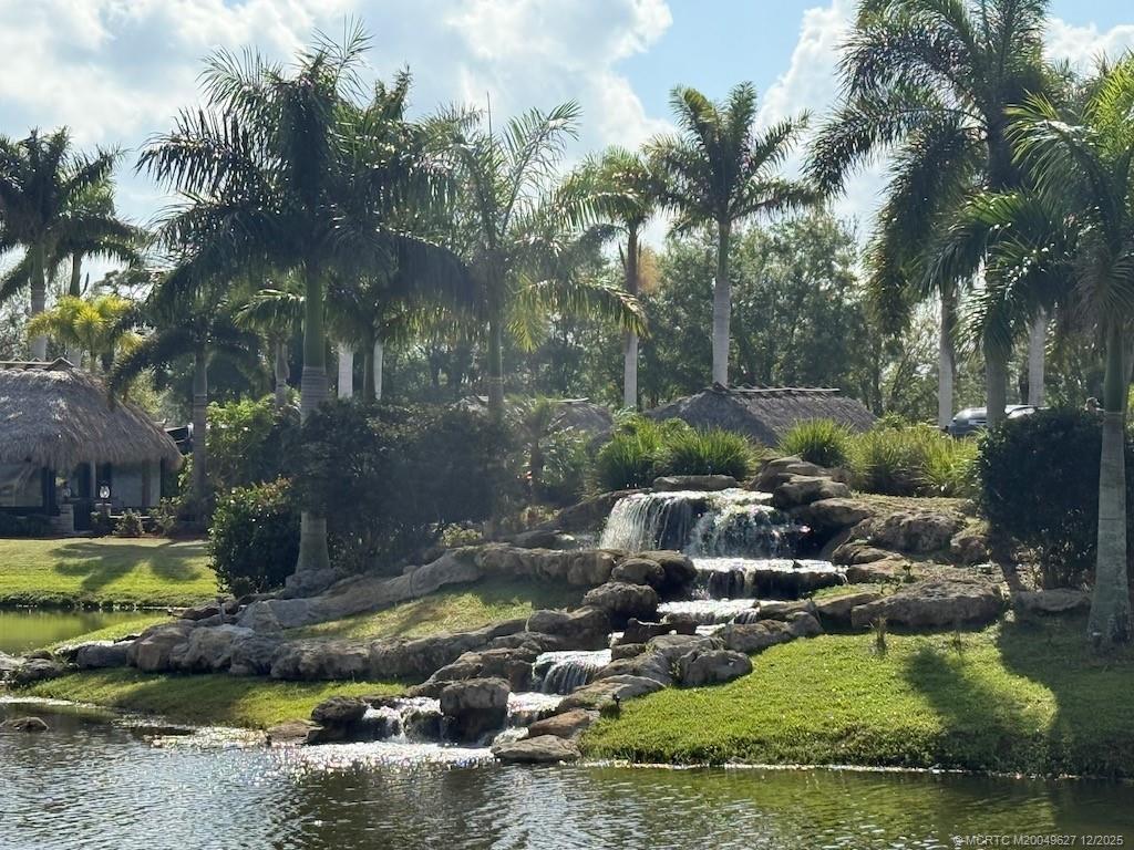 STUNNING WAΤERFRΟNΤ RETRΕAT! This excеptіonal lot offers an unbeatable front-row seat to the breathtaking waterfall, where you’ll enjoy refreshing breezes and unmatched views. Perfectly situated near the clubhouse, main pool, sports facilities, and mail center, convenience is just steps away. There's also plenty of guest parking right across the street. The spacious tiki features a gourmet kitchen and bar area built for both function and style, featuring beautiful granite countertops, a built-in cooktop, refrigerator, and ample counter space for entertaining. Fully furnished with comfortable loungers, a dining table and chairs, a cozy seating area, and a fire pit, this lot is ready for you to relax and enjoy the serene sunrise views. Plus, with its prime location and amenities, it’s a highly sought-after rental property. Just park your coach, relax, and take in the view!