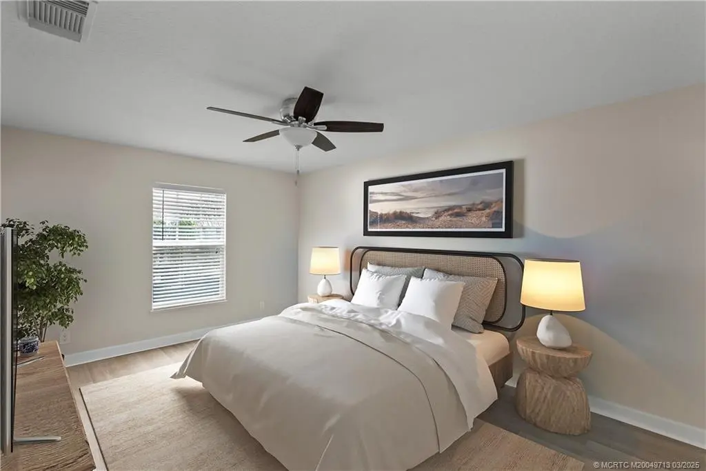 Located in the heart of Bedford Park, this 3-bedroom, 2.5-bath townhome offers a bright, open layout and thoughtful updates throughout. The main level features easy-care tile flooring, great natural light, and a welcoming open-concept living space that makes everyday living and entertaining easy. Upstairs, the spacious primary suite includes a large walk-in closet and a 5-piece bath with soaking tub and newly tiled shower. Fresh paint, new vinyl plank flooring, a newer A/C, and paid-in-full solar panels mean many of the big-ticket items are already handled for you. Enjoy your private patio for morning coffee or evening unwinding, and catch neighborhood fireworks right from the front yard. Bedford Park residents enjoy a pool, playground, dog park, and butterfly garden just a short stroll to Tradition’s shops and restaurants. Now offered with a 1-year home warranty and ready for a quick close. If you’ve been waiting for the right opportunity in Bedford Park - this might be it.