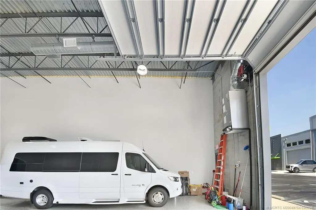 Auto Vault Storage Unit – Premium & Secure! Exceptional storage for RVs, Coaches, Boats, and Cars in a pristine, gated complex. Built in 2020, this insulated, air-conditioned, concrete constructed unit features epoxy floors, a half bath, multiple electrical outlets, and a dedicated 50-amp RV outlet. A motorized 14’ x 13’ insulated garage door with a separate pedestrian entrance provides easy access. Impact glass transom windows allow natural light to filter in. The complex offers large aisles for effortless maneuvering of motorhomes, 5th wheels, or trailered boats. Conveniently located just minutes from downtown Stuart and Jensen Beach. Secure, well-maintained, and designed for your most valued vehicles. Don’t miss this rare opportunity!