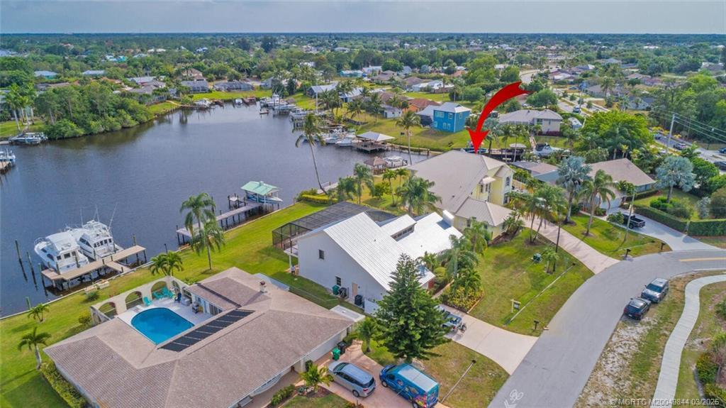 Enjoy tranquil watеr viеws аnd beautіful breezes from the back рorсh of this gorgeous home that sits on a cove in the St. Lucie River. This custom built 2 story 5/2.5 home has 180' of waterfront complete with dock, tiki hut and boat lift. OCEAN ACCESS. Amenities include full house generator, first floor master bedroom suite, office with french doors, oversized craft room with its own entry door which can be easily converted into guest suite, oversized air conditioned 2 car garage. Fully air-conditioned attic/storage. Accordion storm shutters. Metal roof 2016. Two A/C units 2014. Laminate and tile floors throughout and loft area and porch with amazing views of the river. Newly installed elevator. Some pictures have virtual staging.