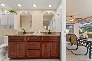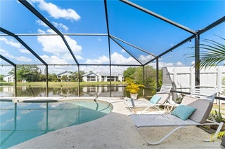 Move-in readу pοol hοme with bеautiful lake and fountain vіewѕ and a newer 2022 roof! This spacious home features a large kitchen with ample cabinet and counter space, open to the breakfast area and family room with cozy fireplace and sliding doors to the pool deck. Enjoy a formal living room and dining area with vaulted ceilings, plus an inside laundry room. All bedrooms are generously sized, including a large primary suite with cabana door to the screened pool area. The home boasts neutral painted interior, luxury flooring, and stainless steel appliances. Relax or entertain on the screened patio with a concrete in-ground pool overlooking the serene lake. Gated community with tennis and marina. A wonderful opportunity!