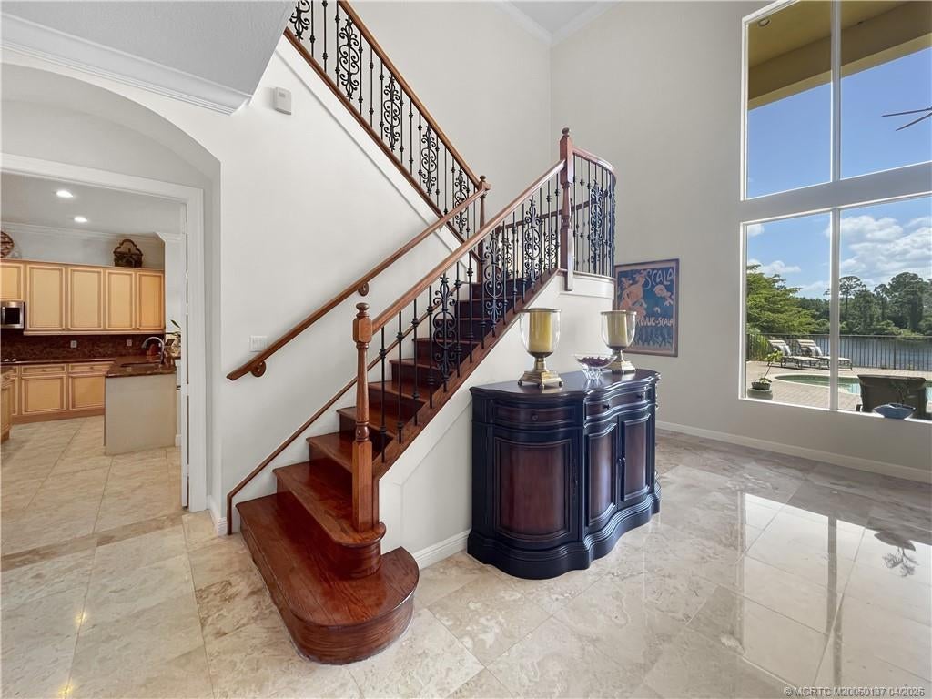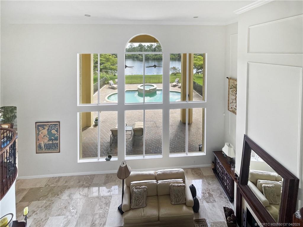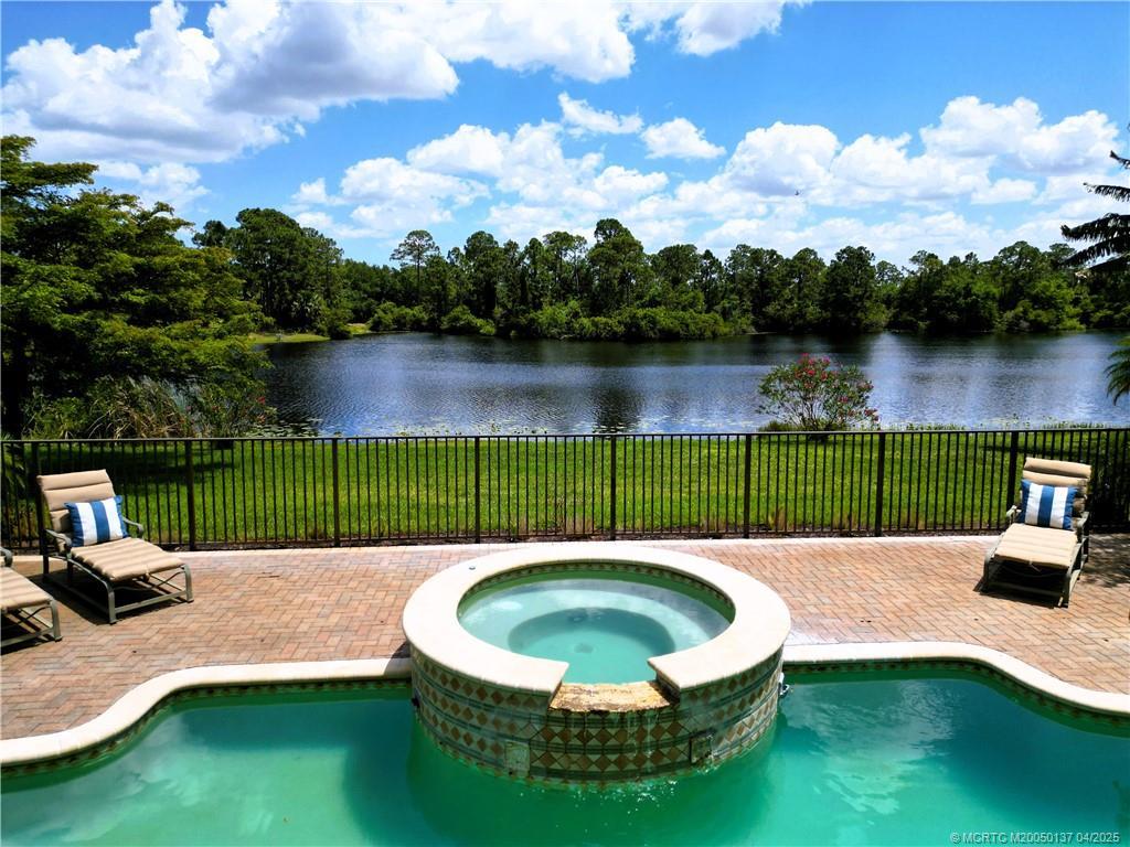 PRIVATE LAKESIDE RETREAT - This updated 5 BR, 6 bath, 4 garage space, pool home in Cobblestone offers gorgeous lake views, polished marble floors, newer appliances, a Culligan water system, and fresh interior/exterior paint (‘24). Other upgrades include a new 5-ton A/C (‘24), new 1-ton ACs ('25), and new water heaters ('25). The primary suite feels like a luxurious spa, with marble bathrooms and tranquil lake vistas. The upstairs loft with a full bath offers the perfect flex space for a 6th bedroom, office, or game room. Relax by the resort-style pool with new heater, pump, motor, and lush landscaping. The upstairs bonus room with full bath is perfect for a 6th bedroom, office, or media room. Cobblestone is a gated community known for oversized lots, lush preserves, optional golf memberships, and a relaxed, friendly vibe. Just minutes to I-95 and the Turnpike, "A"-rated Martin County schools, great shopping, and beaches—this Palm City gem blends convenience, luxury, and natural beauty.