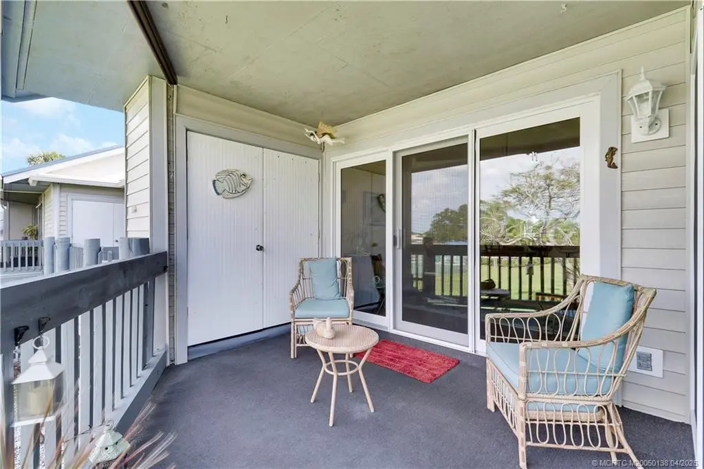 Welcome home to your little slice of paradise! This beautifully maintained condo featuring vaulted ceilings, skylights, 2 bedrooms and 2 baths is conveniently located in Sailfish Village, which is in close proximity to downtown Jensen Beach and the beaches. Nestled in a prime location, this second-floor end unit offers peaceful views of the lush green space and overlooks the community pool and tennis court. Have peace of mind with the new impact windows and doors, which lead to a front and back extended patio. A/C 2020 and metal roof 2022. You never have to leave as the community offers an abundance of amenities, including a clubhouse, boat ramp, tennis, pickleball, and pool.