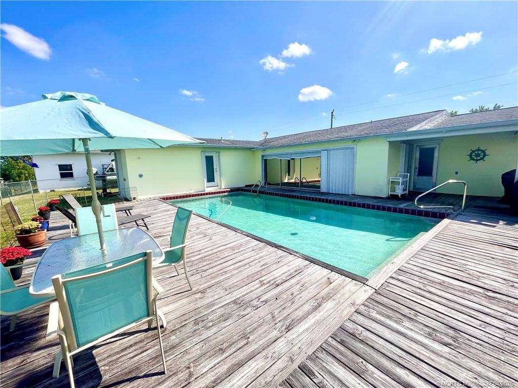 Public Remarks: Experience Florida living at its finest with this ocean access extra-large almost 1700 SF 2 bedroom 2 bath CBS home updated to include a huge primary bath and bedroom, and extra storage shed. This tropical oasis features a formal dining room, updated kitchen with stunning blue pearl granite counter and stainless steel appliances breakfast bar, family room that leads to the inviting pool and your private dock. This home is situated on a fully fenced ¼ acre lot with a 30 amp 125 volt RV hookup. Plenty of space for all of your toys to enjoy this luxurious waterfront lifestyle! No HOA! 2003 Roof, 2021 AC Condenser and AC Handler, 2024 Dishwasher, 2019 Refrigerator, 2025 Microwave, 2025 Oven, 2 Water Heaters 2023 & 2025, Full Home Accordion Shutters with garage door to pool has steel panels, Exterior Paint 5 years, Interior Paint 3 years, Spa tub motor in primary bathroom replaced in 2025, 30 amp 125 volt RV outlet