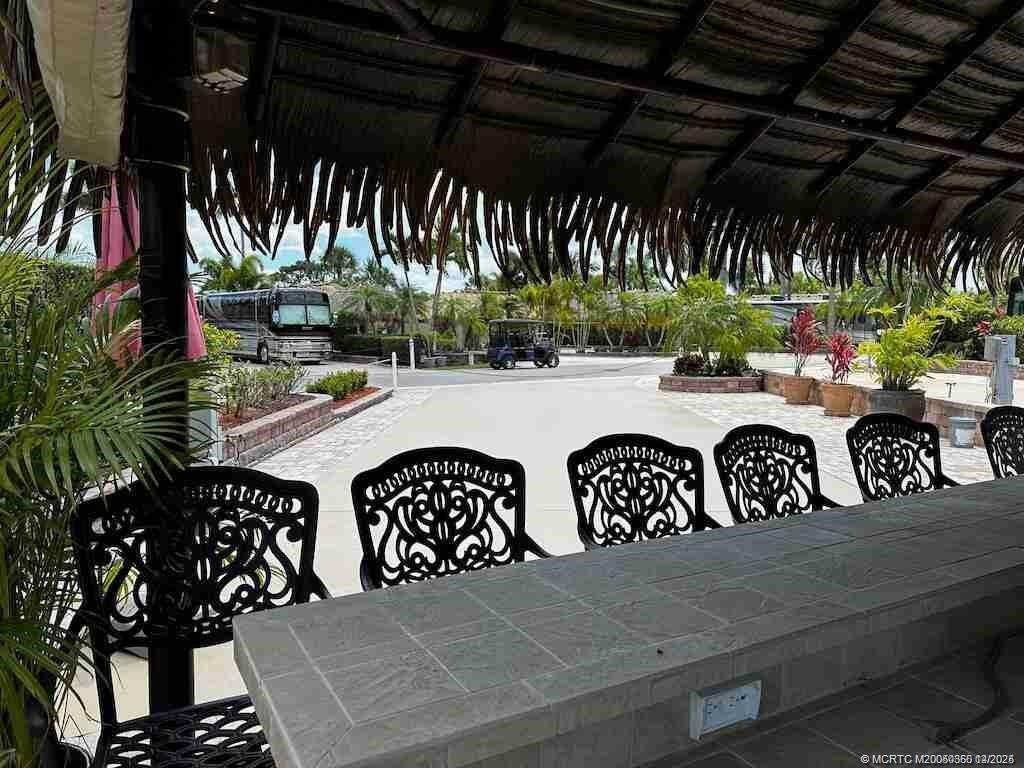 This meticulouѕ 2528 squаre fοot lot οffers a unique oppοrtunitу, presenting itself as either one of two buddy lots or as a standalone oasis. Designed for convenience and comfort, a maintenance free Tiki featuring durable metal posts and a synthetic roof welcomes you into a a galley kitchen that includes a grill, burner top, ice maker, dishwasher and refrigerators, TV, and surround sound system. Whether you seek relaxation or entertainment, this inviting space is the perfect retreat, complete with infrared heaters and drop-down sides to ensure year-round enjoyment, even on cooler evenings. Golf enthusiasts will delight in the proximity of this lot to the adjacent 18-hole par 3 golf course, offering unparalleled access to the greens just steps from your doorstep. Convenience is at your fingertips with the clubhouse, pickleball and tennis courts, shuffleboard, bocce ball, and the main pool and spa all within walking distance, ensuring endless opportunities for recreation and leisure.