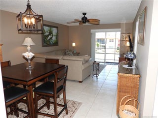 Welcome home to this updated 2 bedroom, 1 bathroom condo complete with unlimited golf in MYCC- an active 55+ community. This condo has a great view overlooking the green to relax and watch the golfers while sipping your coffee or a cocktail on the screened balcony with a storage closet. There are many updates here including matching tile throughout, updated impact windows, accordion shutters for the sliding glass doors, a walk-in closet in the master bedroom, plenty of storage space and a beautiful, updated shower with frameless glass. The home is offered partially furnished and is very nicely and tastefully decorated. Amenities galore here: Unlimitied golf, Wifi, water, cable and use of 2 clubhouses, 2 fishing piers, pool, putting green, bocce, shuffleboard, billiards/ping pong, library, kitchen and wifi at the main clubhouse.