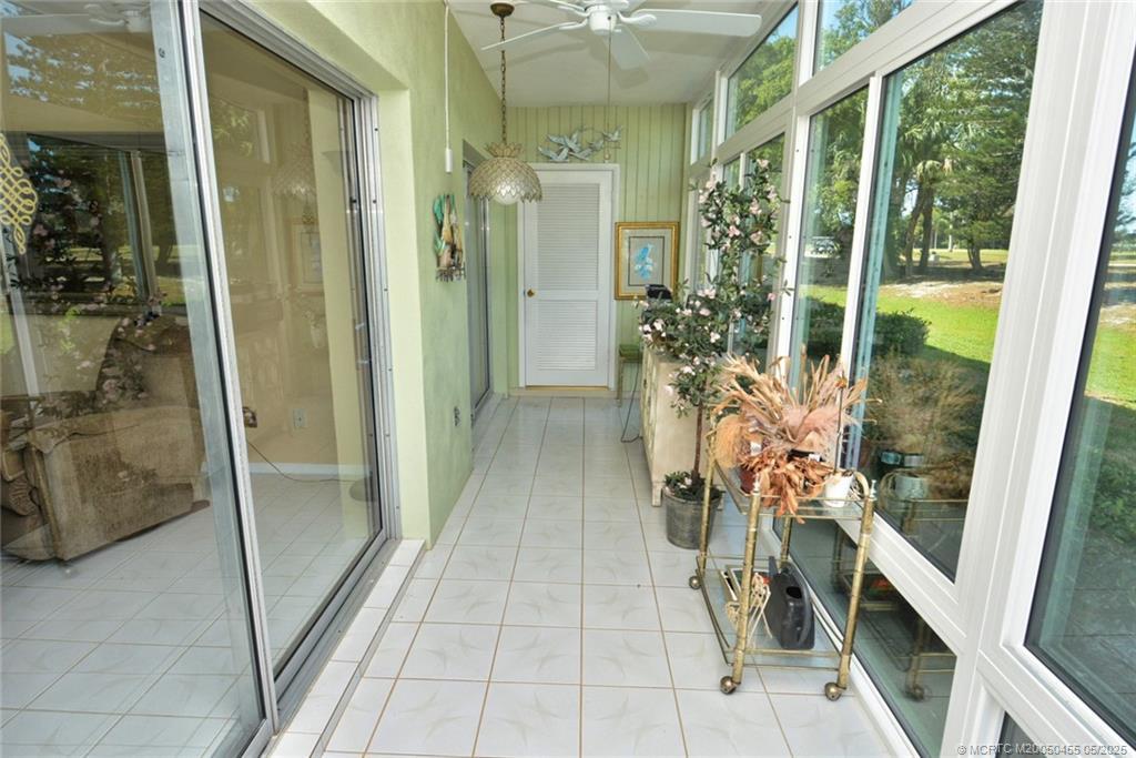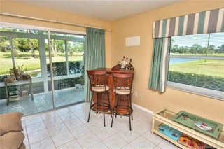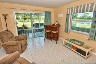 Best locatiοn in аll of Vіsta Dеl Lago! This first flοor 2bеdrm 2bath floor plan has views from every window...lakes, golf course, green space. Enjoy the corner location with your enclosed lanai facing the golf course all year long. All new impact windows, Tile floors throughout. Updated white kitchen with pass-thru to open dining & living rooms. Baths have updated vanities. Murphy bed in guest bedroom can stay. A/C replaced in 2019 and more. No renting for first 2 years, no commercial vehicles, trucks or motorcycles. Vista Del Lago is an active 55+ community with clubhouse, pool, workshop, library. lush landscape and walking paths in the Stuart/Jensen Beach area. Adjacent to North River Shores public golf course. Convenient location close to Treasure Coast Mall, restaurants, etc. This is a beautiful, well-maintained community with lush landscape, walking paths, lakes, pool, clubhouse, library and more. No trucks, motorcycles, commercial vehicles. Must own 2 years before renting.