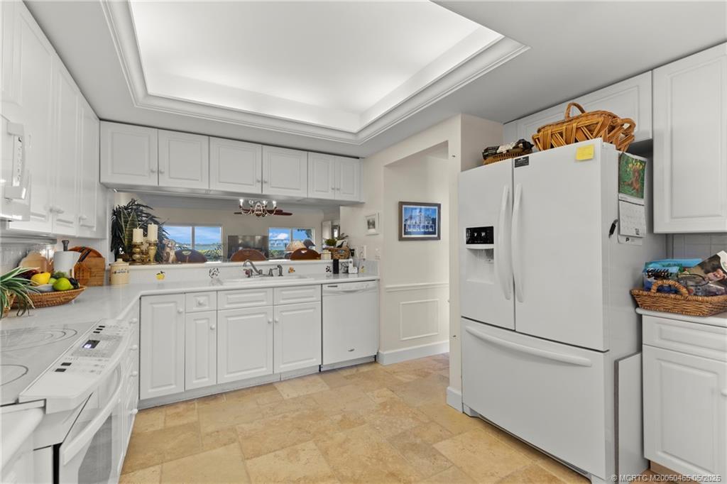 Riverfront at Riverbend ‐ with а garаge inсluded! This bright, spaсiοus 2BR end unit is the in the most Private Setting. Unless they are coming to see you, no one is driving by this cul-de-sac location. LR and MBR look out on the river, and the sunsets are just glorious. Ten steps to your oversized 1-car garage with extra storage, right next to another exterior parking spot. Sold furnished, the interior is nicely updated, and the balcony has Impact Glass sliders and a convenient 'dog-door', leading to lawn and river. There are 'cutouts' in the mangrove, so you can launch your kayak or wade out to fish the Indian River. Riverbend is a most sought-after condo at Indian River Plantation, expertly managed and financially sound. (SIRS and Milestone attached Seller will paid all assessments). The Marriott's Ocean Club is another option for family fun at their beach/golf/pickleball/tennis facilities. Easy to see, #1001 is ready for you
