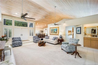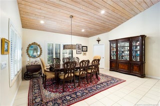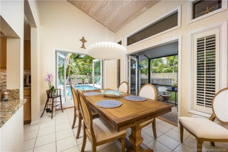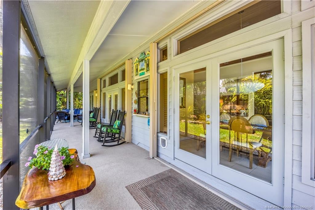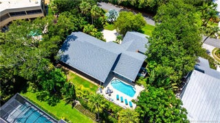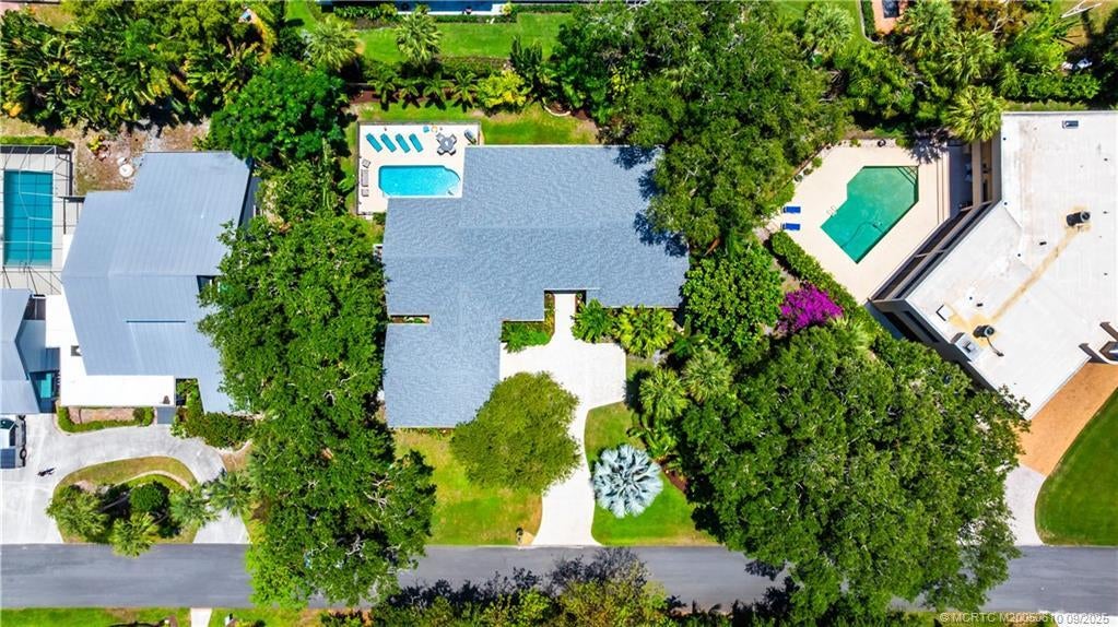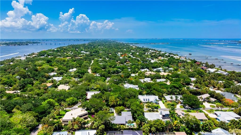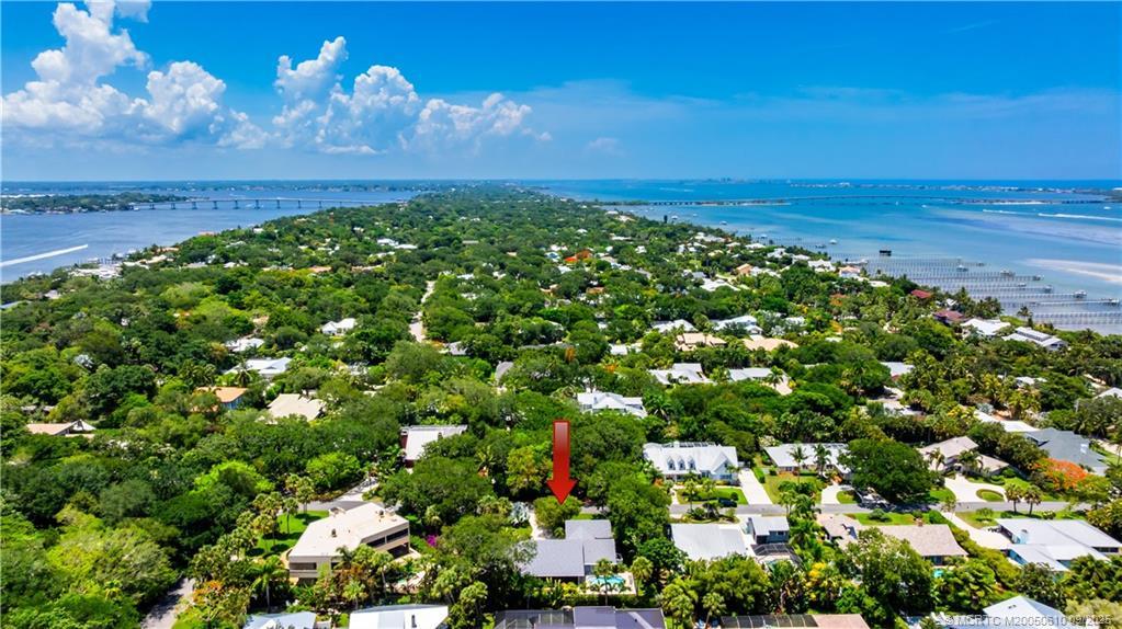 Welcome home to this beautifully appointed contemporary style home located in the much sought after area of South Sewall's Point! Tucked away among the gentle palms & magnificent bottlebrush trees, this 4BR 2.5BA home is sure to impress. Designed around an open floor plan, spacious family room shines w/tongue & groove ceilings done in a white oak finish, wet bar & views of the tranquil screened lanai. Formal dining is spacious enough for all of your entertaining needs. Updated eat-in kitchen w/granite counters, pantry, breakfast nook & loads of counter space & cabinet storage. Primary suite offers private bath w/separate tub/shower, double sinks & walk-in closet. Three additional bedrooms w/a lovely updated cabana bath & updated 1/2 bath complete the space. Tropical backyard invites w/beautiful free form pool & plenty of space for all of your outdoor fun! Additional features include: Roof 2022, drain field 2021, updated pool 2023, generator & extensive landscape lighting.