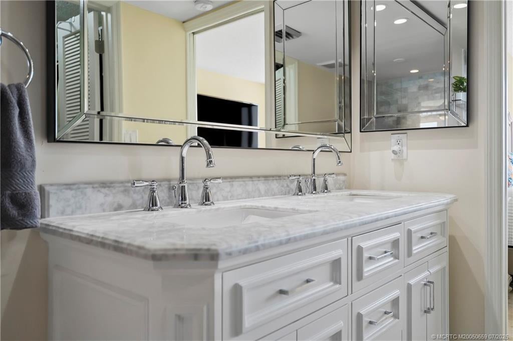 Oceanfront Luxurу Lіving іn Jenѕen Beach. Enjoу breаthtaking views of the Atlantic Ocean and Intercoastal Waterway from this stunning beachfront condo. Fully renovated 2-bedroom, 2-bathroom condo has a gourmet kitchen equipped with stainless steel appliances, quartzite countertops, stackable washer/dryer, and a convenient office nook. The luxurious Owner's Suite boasts an all-marble bathroom with dual sinks, a large walk-in shower, and an expansive custom walk-in closet. Islandia II offers resort-style amenities including: guard-gated access, two heated pools, a hot tub, fitness center with sauna, lighted tennis and pickleball courts, bocce courts, and a billiards room, a community room with a full kitchen, dedicated pet off-leash area, RV/trailer parking, and a car wash station. The building has completed the milestone report along with concrete and structural inspections. Located on Hutchinson Island near Downtown Jensen, Downtown Stuart, great local restaurants & shopping.