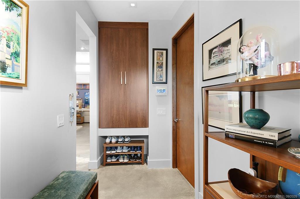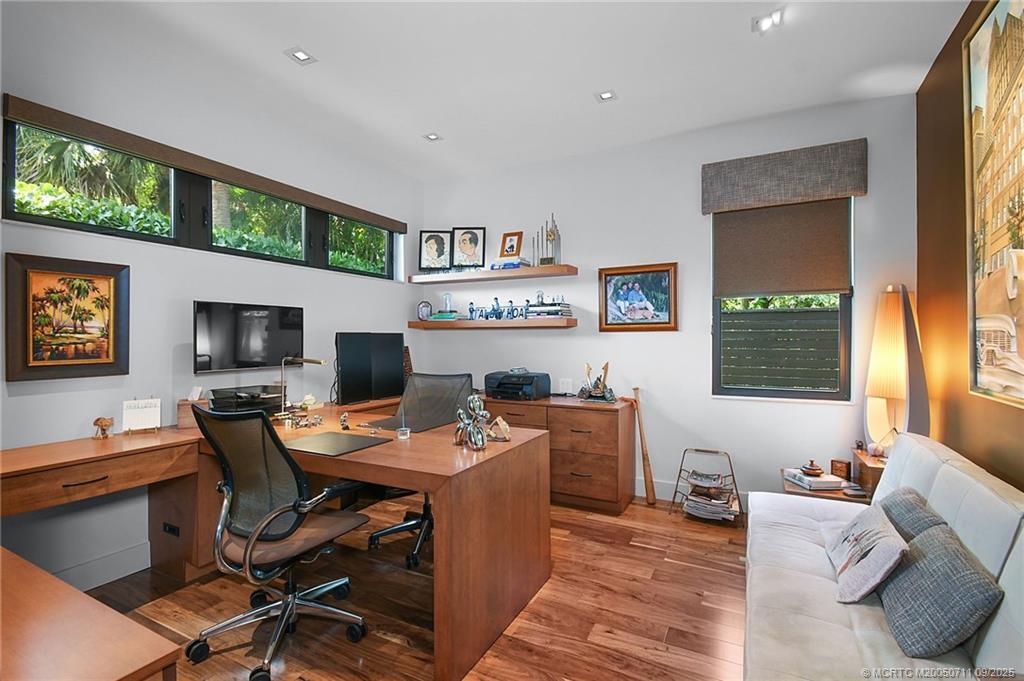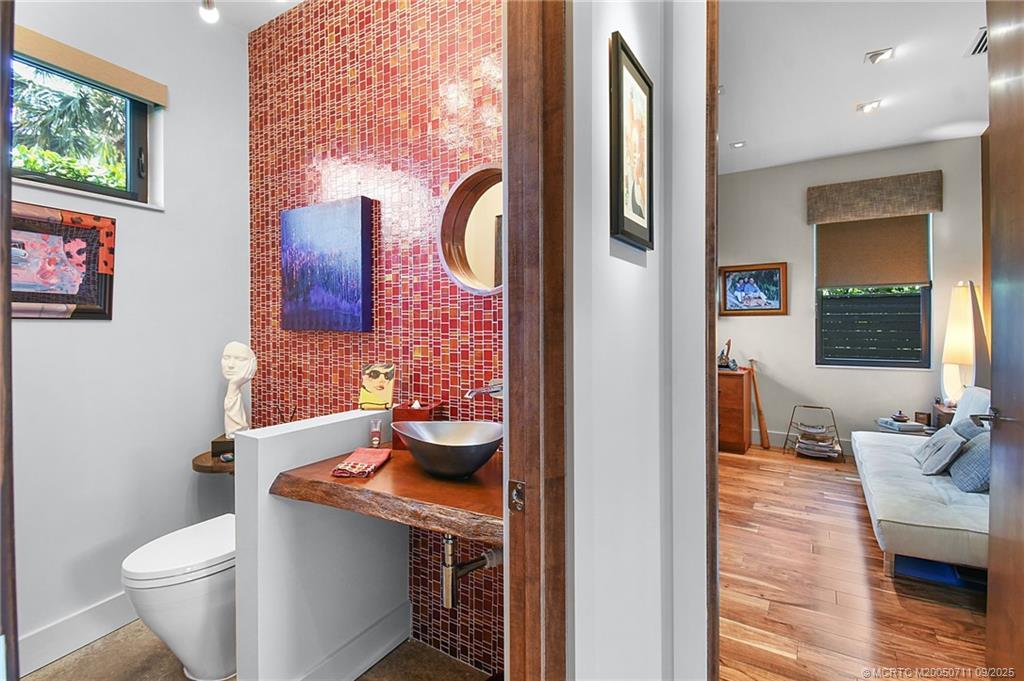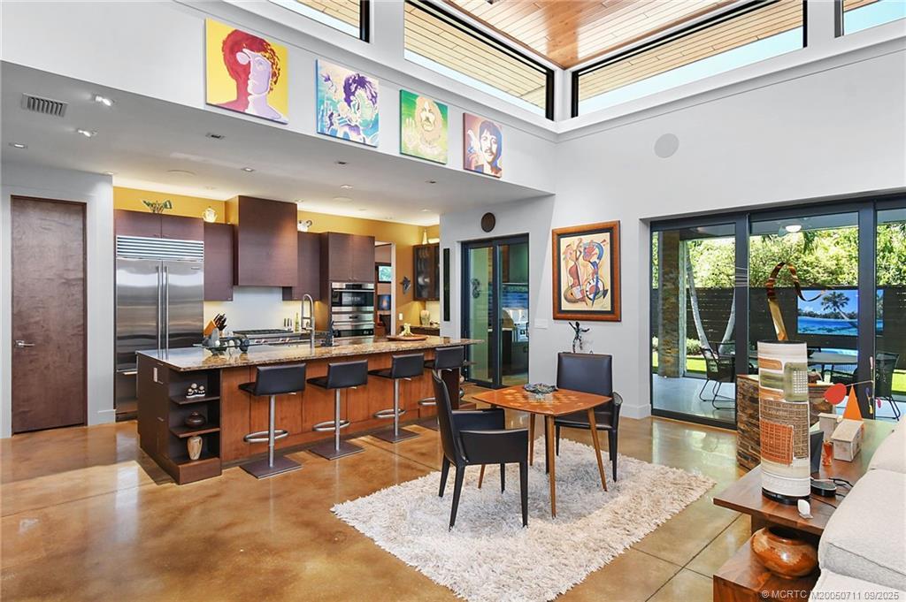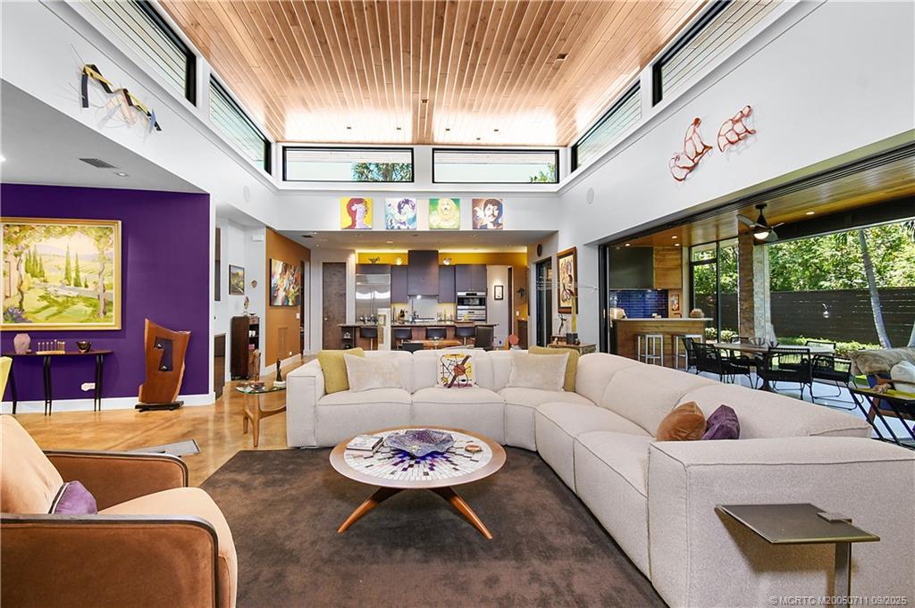 A rare opportunіty іn downtοwn Stuart, thіs one-of-a-kіnd cuѕtom mid-century modern home blends striking design with exceptional function. Created by the decorator/owner, the residence showcases polished concrete floors, soaring tongue-and-groove ceilings that continue through outdoor spaces, and programmable designer LED lighting throughout. The gourmet kitchen features Wolf and Sub Zero appliances, custom cabinetry, walk-in pantry and an integrated sound system. A 900-bottle, temperature-controlled wine room with a picture window offers a dramatic centerpiece. Pocketing sliders open to a covered patio with a luxury summer kitchen, gas fireplace, and retractable screens overlooking a private fenced yard with astro turf and a putting green. Additional highlights include a generator, impact-rated pivot front door, programmable blinds and thermostats, and thoughtfully designed mud and laundry rooms with ample storage. Room for pool! Renders and proposal available.
