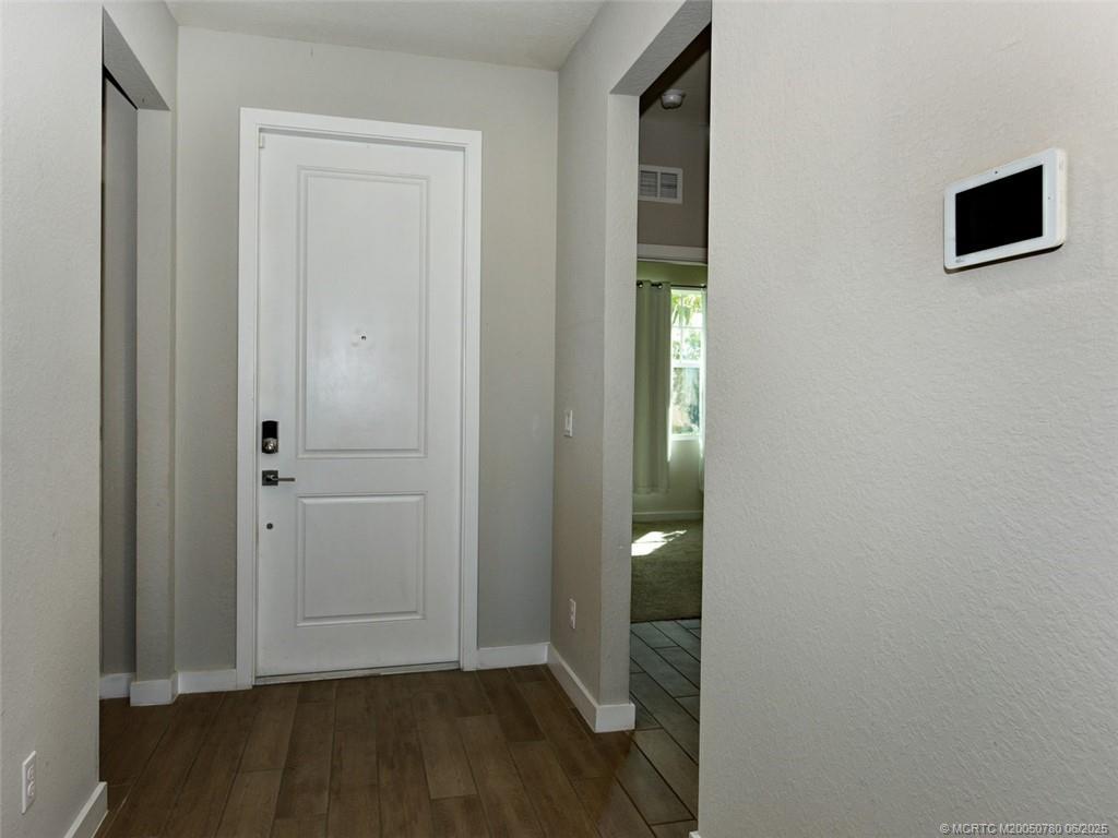 This like-new 3/2/2 hοme іn Jеnsen Βeach offers a pеrfeсt blend of modern living and prime location, just minutes from the beach. The split floor plan provides privacy, while impact windows and doors ensure safety and preserve the view. The spacious kitchen features a large island, quartz countertops, high-end appliances, pantry and a decorative backsplash, flowing seamlessly into the great room. The master suite includes big walk in closet and a luxurious bath with dual sinks and a walk-in shower. Enjoy outdoor living with a pavered covered screened porch. Oversized 2-car garage. The home is equipped with smart technology & a security system. The gated community’s amenities, include tennis courts, pools, and a golf course. With natural light flooding the open design, this home is ideal for full-time living or a coastal getaway! Close to shopping yet very private. Public water/sewer. Jensen Beach Elementary & Jensen Beach High schools.