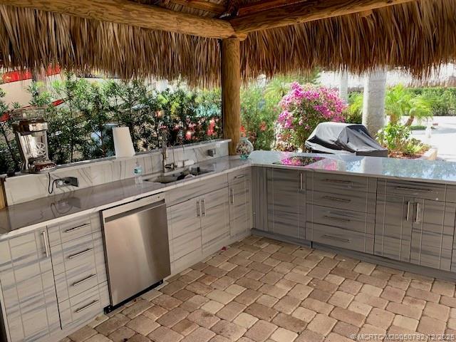 Prime Waterfront RV Lοt on а Stunnіng Royаl Palm-Lined Streеt. Welсome to one of the most beautiful locations in the resort! This exceptional lot is perfectly positioned along a picturesque, royal palm-lined street, offering sweeping views of a tranquil waterfall and breathtaking sunsets—an ideal setting for relaxing or entertaining in style. Designed for low-maintenance luxury, the entire lot is covered in elegant pavers, while raised landscape beds with mature plantings and vibrant bougainvillea provide a lush, private retreat. At the heart of the space is a spacious tiki, thoughtfully outfitted with upgraded, marine-grade cabinetry, a built-in cooktop, dishwasher, and full-size refrigerator—everything you need to enjoy seamless outdoor living. This property has been immaculately maintained and is move-in ready. Just bring your coach and start living the ultimate waterfront RV lifestyle today!
