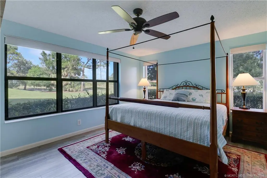 Best View in the community and a 1st FLOOR UNIT IN A 2 STORY CONDO! TRUCKS OK Spacious 2BR/2BA + Office in Martin Downs Country Club offers beautiful views of the golf course from the specious screened patio. Primary suite features a large Br, walk-in closet, updated bathroom, and luxury Plank vinyl flooring. Kitchen boasts stylish updates with blue tile countertops & tasteful backsplash. The living area and office are enhanced by elegant cream-colored tile, custom shades and blinds throughout. Membership options, including The Village Club, offering access to a pool, pickleball, & dog park. Memberships: Martin Downs CC and Banyan Creek Golf Club. Minutes to I-95, Turnpike, beautiful beaches, golf courses, charming downtown Stuart & Palm City. Included in the HOA, Insurance, maintenance for building and roof and positive reserve fund.