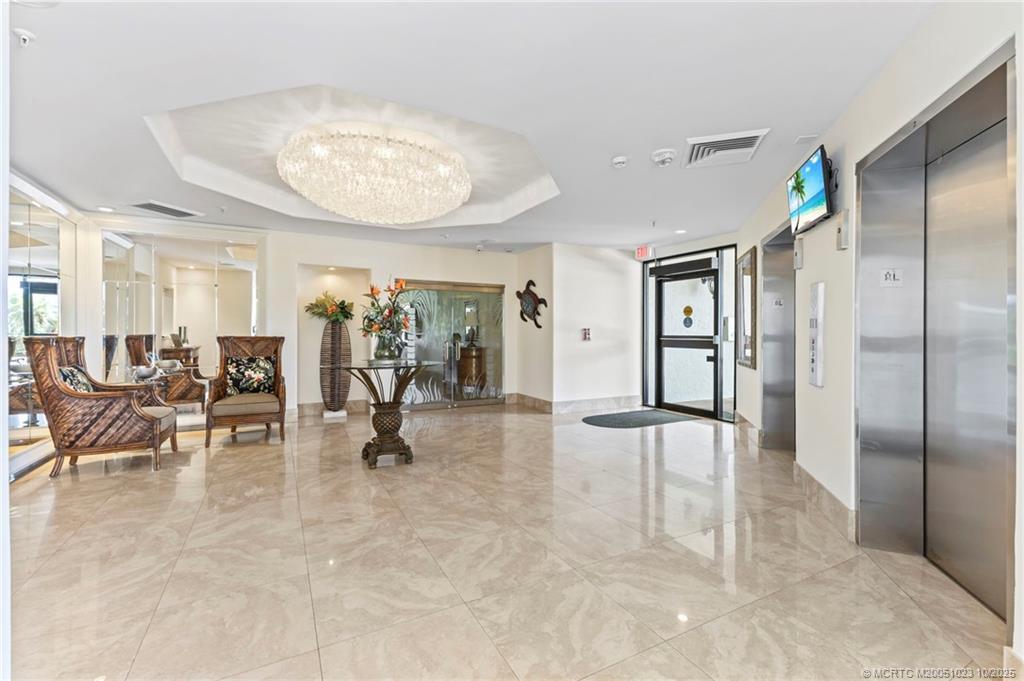 Oceanfront. Southеaѕt cοrner unit іs located on the 5th floοr. Thе southeastern exposure gives you warmth in the winter and cool breezes during the summer. Totally renovated including new impact glass sliders & windows plus accordion shutters on the balcony for protection. Easy to lock & leave knowing everything is protected from storms as much as is possible. Gorgeous kitchen with all the upgrades & offering spectacular views of the ocean. Not only do you have sweeping views of the ocean from almost every room in the residence, including the sumptuous master suite, but there are also views of the intracoastal waterway & the Jensen Beach Causeway. Gated community.