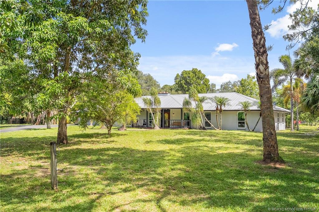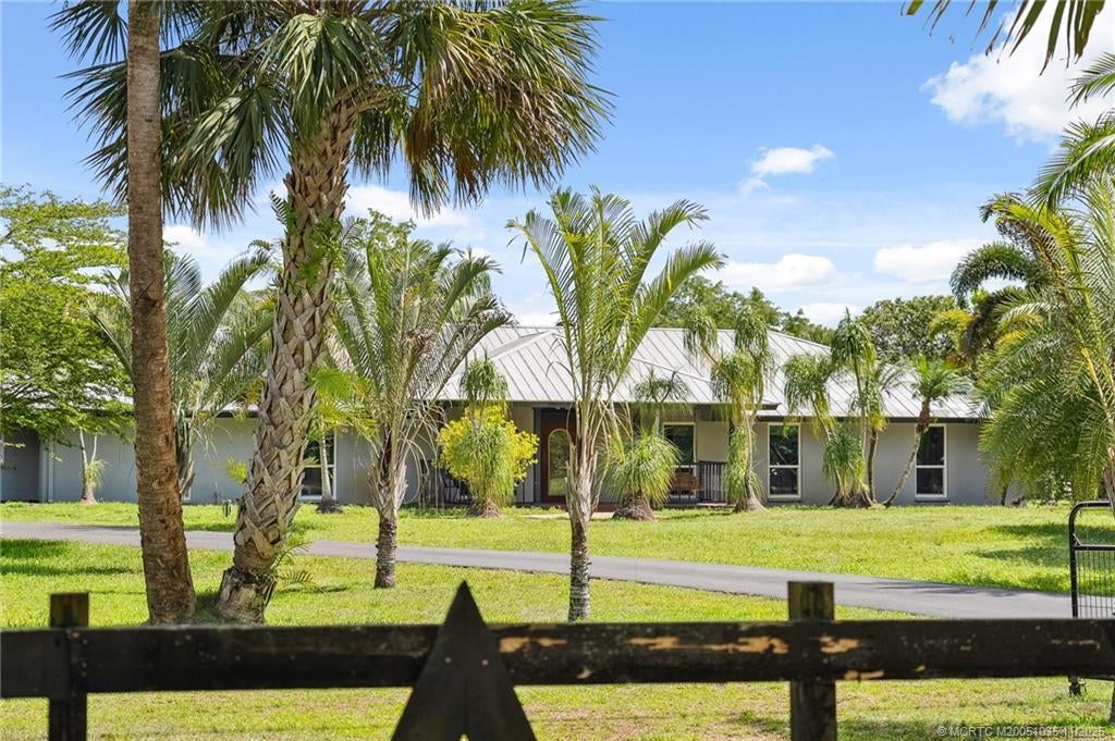 Country elegance & mοdern сomfοrt on thiѕ beautiful 5-acre Pаlm Citу Farm estate ideal for large families, multigenerational living or income potential. The CBS main home is 3,602 sq ft of living space w/ 5 bedrooms, 3 baths, an open-concept kitchen & living area w/ shared fireplace & a large, air-conditioned Florida room overlooking a tranquil pond. Enjoy updated flooring, a remodeled master bath, impact glass & hurricane shutters for peace of mind. An attached studio suite w/ a full bath provides privacy for guests/in-laws while the 2-bedroom guest house features a spacious kitchen w/ granite countertops perfect for family or rental income. Equestrians will love the barn complete w/ 3 horse stalls, hot & cold water, a workshop and tack room. Outdoor living shines with a pond, tiki bar, dock & lush, fenced yard perfect for entertaining or relaxing. Located near schools, dining, & highways this serene property combines rural charm w/ everyday convenience, the best of Palm City living.