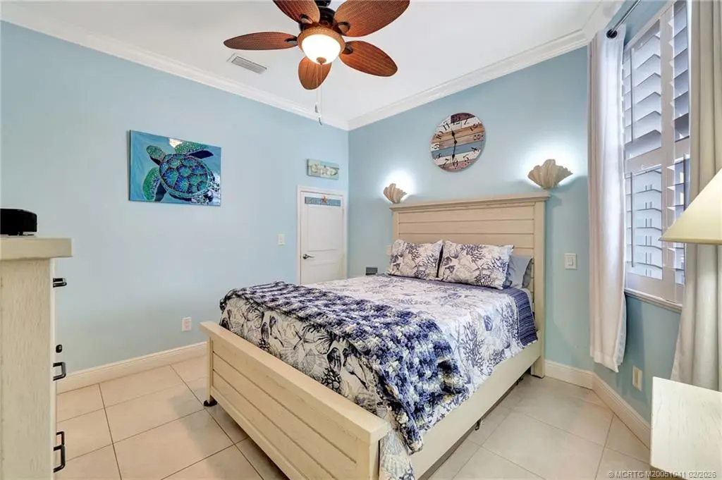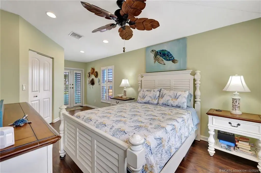 Custom-built concrete home offering the perfect blend of coastal living and timeless design in a beautiful island setting. Thoughtfully designed for comfort and functionality, this spacious residence features two primary suites, one on each floor, providing ideal flexibility for guests or multi-generational living. The first floor showcases an open layout with 10’ ceilings, crown molding, plantation shutters, custom cabinetry, and a breakfast bar perfect for casual dining or entertaining. Upstairs, the private primary suite includes a generous walk-in closet and a screened-in balcony where you can relax and enjoy the serene island breeze and river views. Built for durability and peace of mind, the home offers a seamless metal roof, hurricane-impact windows, a 2022 A/C system, and a tankless water heater. Located in a gated, pet-friendly, and golf cart-friendly community with amenities for an active lifestyle, this home truly has it all.