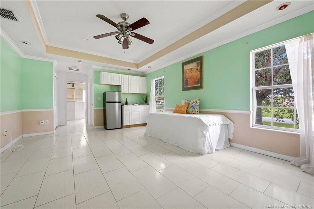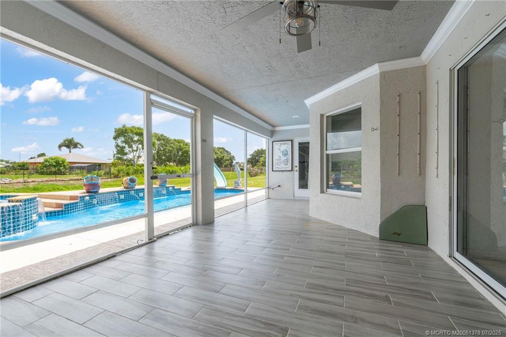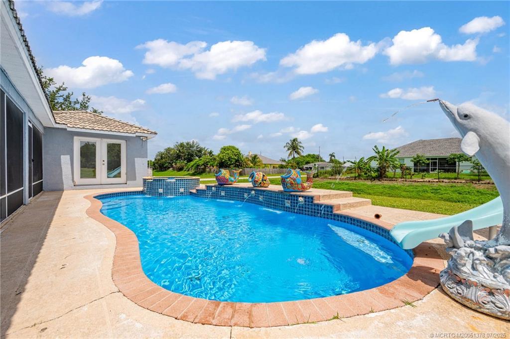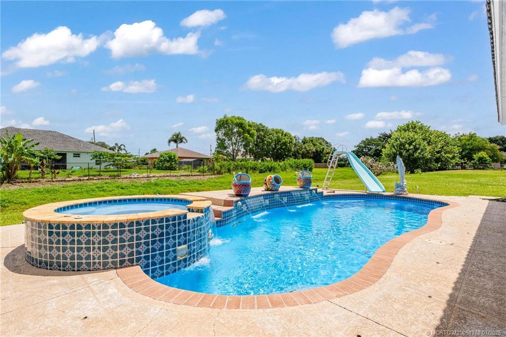 Enjoy multi-family living or rental income in this grand corner lot home located near the turnpike and I-95 in Port St Lucie. Last tenant was paying $1125 per month. The studio offers private parking and private entry. The main home is a 3/2/2 with custom architectural ceilings, split floor plan, hurricane impact 8 ft double front doors, open kitchen, breakfast area, formal dining room, and a custom kitchenette in the master bedroom with an inground gas heated swimming pool and spa; and gas heated stove, and hot water heater also! Schedule your showing today!