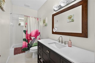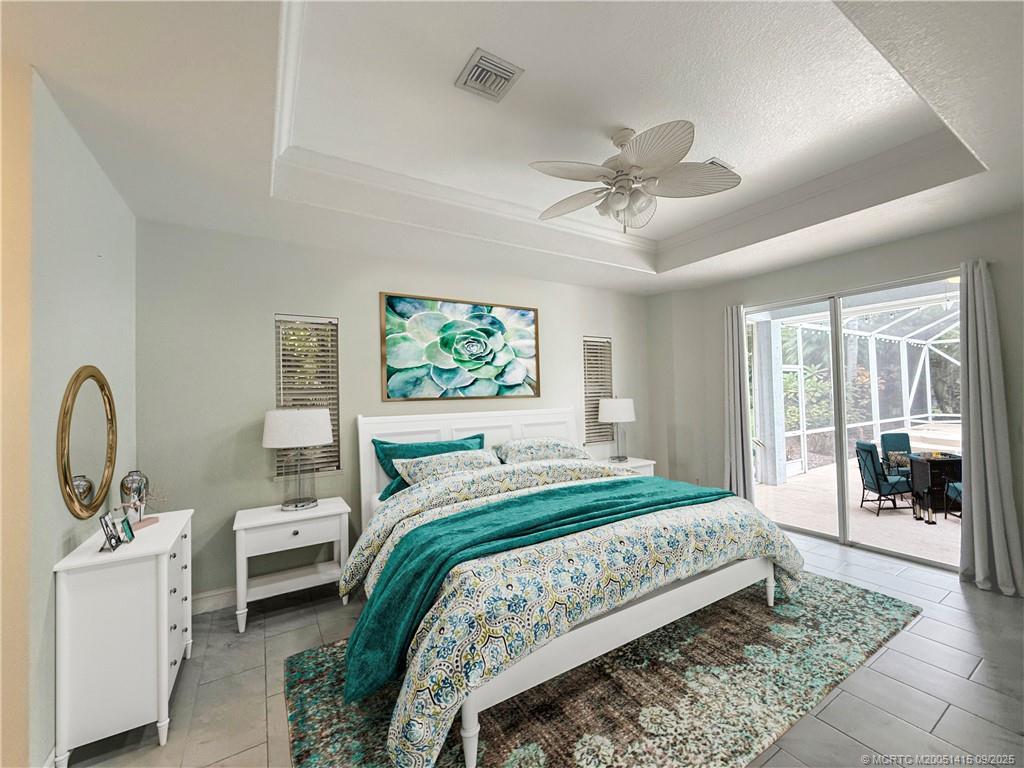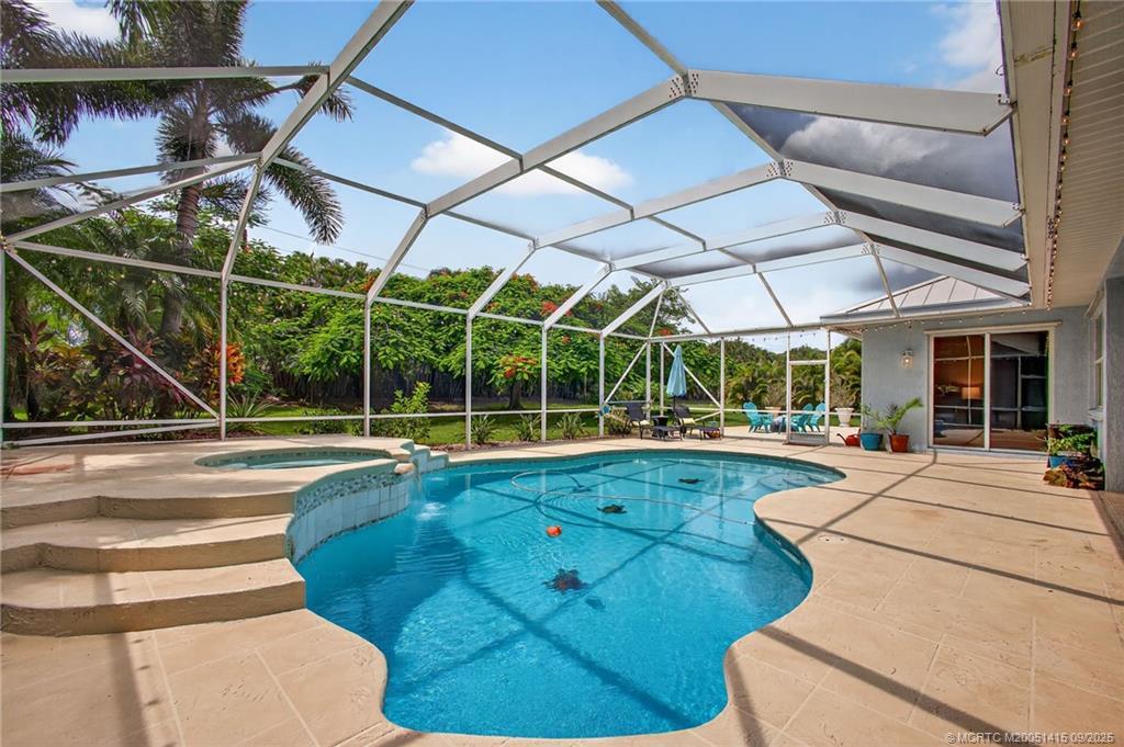 Amazing opportunіty tο own а home іn Palm City's Lake Grοve Εstates with just 64 homes. 5 bed, 4 bath home in Palm City, on nearly 3/4 acre. Stunning new 32 x 32 porcelain tile flooring. Updated kitchen & baths. Formal dining, living; kitchen opens to family room. Triple split plan with privacy suite perfect for in-laws, grads or guests. Huge screened patio and beautiful heated pool and spa completely refurbished. Large open patio for firepit parties. Huge private backyard. Lush landscaping includes fruit and flowering trees. Metal roof in 2017. Circular driveway with ample parking, perfect for pulling your boat through. The gated community has a boat yard, pickelball, tennis and basketball. Fish in the lake off the pier. What an amazing property your entire family can enjoy!