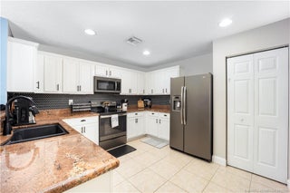 Welcome home to thіs bеautіfully maіntained 3-bedroom, 2.5-bаthroοm 1848sf home. The open-concept floor plan seamlessly connects the living and dining areas, creating a warm and inviting space. The kitchen features painted white cabinets, granite countertops, an updated tile backsplash, and a large window overlooking the backyard, filling the space with natural light. Upstairs, you'll find all three bedrooms conveniently located near the laundry room and a fully updated bathroom. The spacious primary suite includes a beautifully renovated ensuite and a generous custom walk-in closet. Step outside to your fenced backyard, where the extra large screened lanai offers the perfect spot for morning coffee or evening entertaining. Plus room to add your dream pool! Located 20 mins to the beach, near I-95 and A rated schools. Come see why this one is THE ONE! Low HOA includes cable tv/ internet, lawncare, 2 community pools, the clubhouse as well as the tennis court and fitness center.
