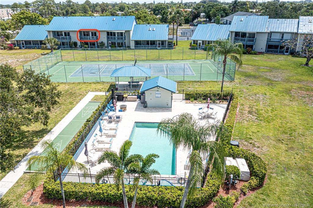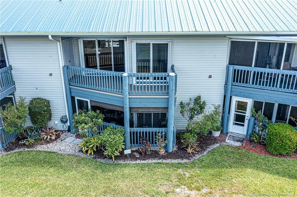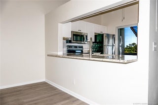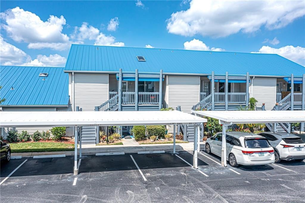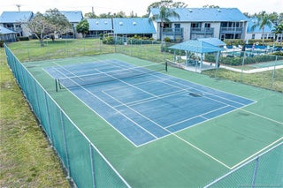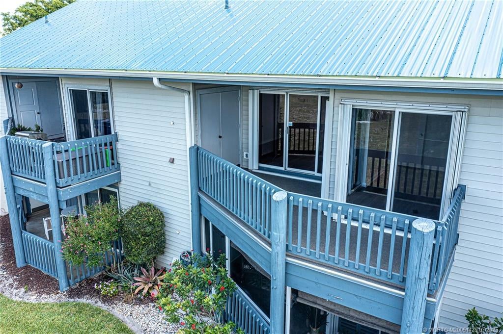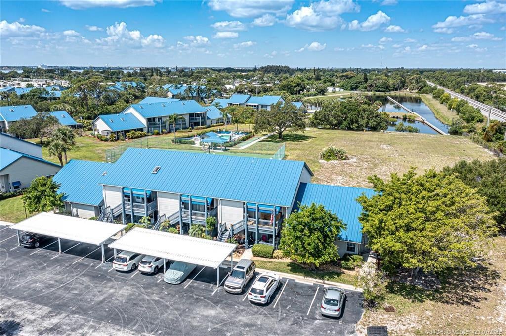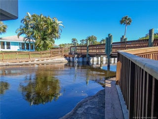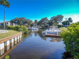 Bright and Modern Condo just a breeze away from the Ocean. Boater and pet friendly! Step into this light-filled, second floor condo, extensively remodeled with modern finishes and open concept design. Features include vaulted ceilings, luxury vinyl flooring and a kitchen with granite counters, classic subway tile backsplash, and sleek white cabinetry. The spacious master suite offers a custom-tiled shower and two sinks. Relax and enjoy the coastal breeze from front and rear patios with peaceful, scenic views. Includes covered parking and full hurricane shutters beneath an ocean blue metal roof (2020). Set along Warner Creek, the community features a private marina, boat ramp, and docks for vessels up to 21'. Amenities include two pools, pickleball, shuffleboard, clubhouse and sauna--all in a prime location just minutes from the sand and surf and charming downtown Jensen Beach.