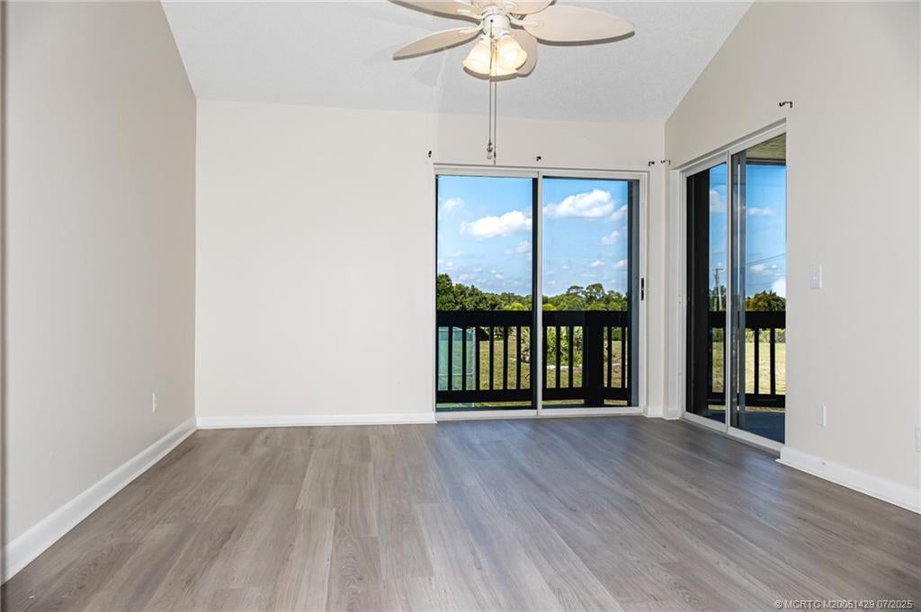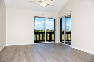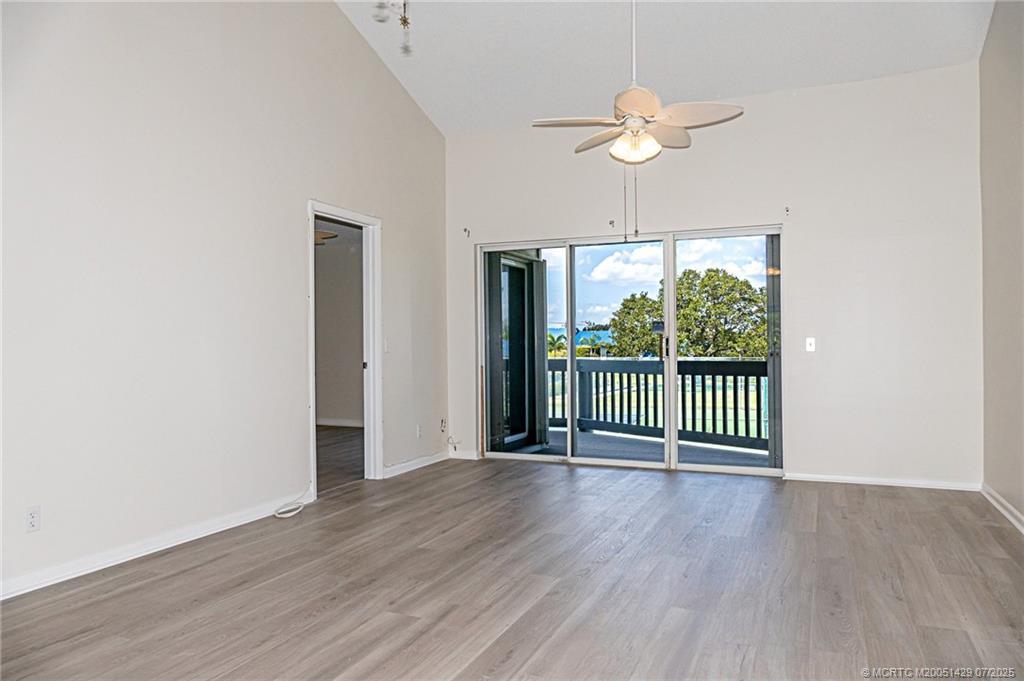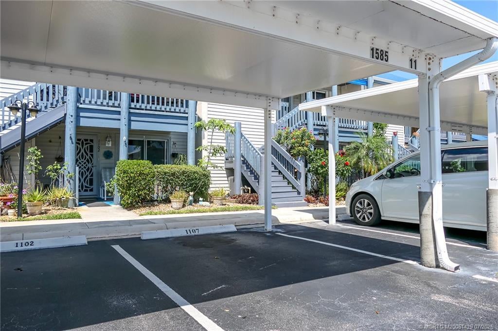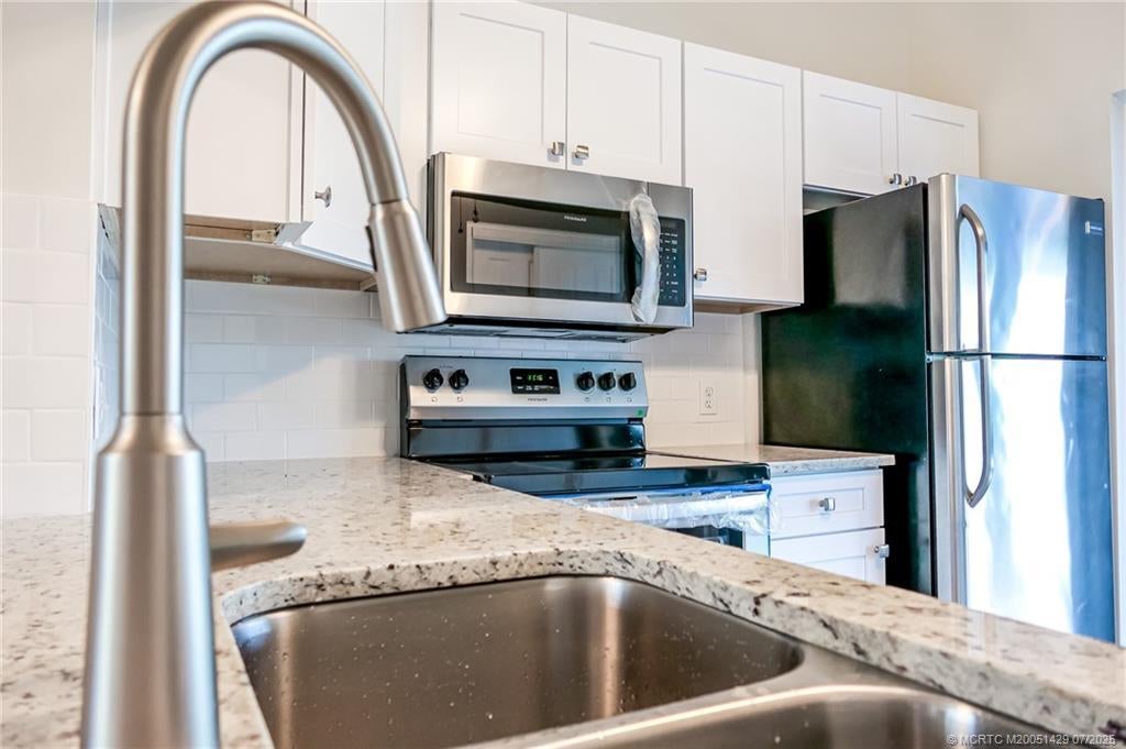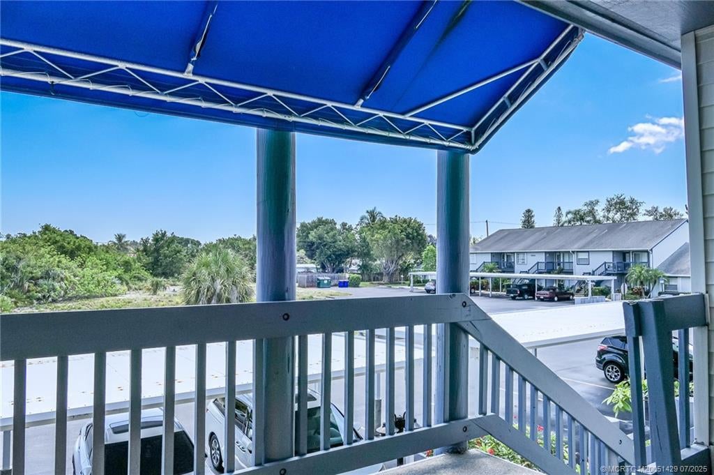Bright and Modern Condo just a breeze away from the Ocean. Boater and pet friendly! Step into this light-filled, second floor condo, extensively remodeled with modern finishes and open concept design. Features include vaulted ceilings, luxury vinyl flooring and a kitchen with granite counters, classic subway tile backsplash, and sleek white cabinetry. The spacious master suite offers a custom-tiled shower and two sinks. Relax and enjoy the coastal breeze from front and rear patios with peaceful, scenic views. Includes covered parking and full hurricane shutters beneath an ocean blue metal roof (2020). Set along Warner Creek, the community features a private marina, boat ramp, and docks for vessels up to 21'. Amenities include two pools, pickleball, shuffleboard, clubhouse and sauna--all in a prime location just minutes from the sand and surf and charming downtown Jensen Beach.