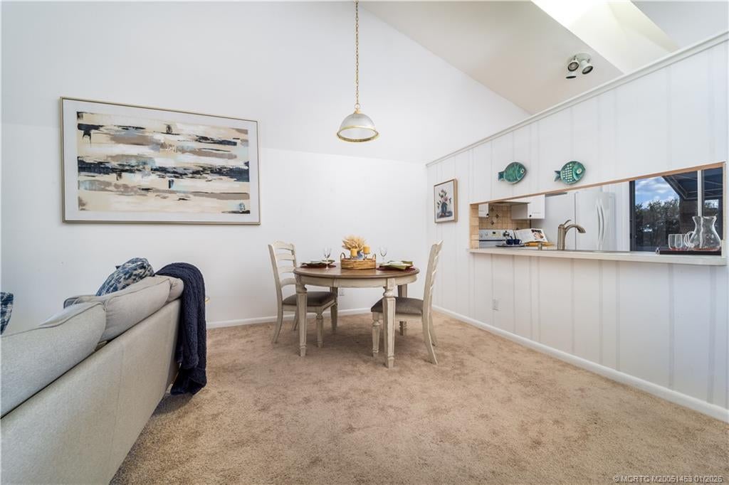 Whether you're seeking a winter getaway or a full-time residence, this property offers comfort, convenience, and an unbeatable location! Welcome to Sailfish Village at Beacon 21, a charming community ideally situated just minutes from the St. Lucie River, beaches and vibrant downtown Jensen Beach. Enjoy the feeling of an open floor plan with the vaulted ceiling living room and the full-sized kitchen with sliders to the front porch. And at the end of a busy day, find quiet in the primary suite, large enough to include a sitting area for reading or to savor the view of the pool. With 2 bedrooms and 2 bathrooms, there is room for family, guests or to create a space to work. Sailfish Village is an all-ages community with excellent amenities: two pools, tennis courts, a clubhouse, and a boat club (docks for boats up to 21 feet, as available). Minutes to Treasure Coast Mall, boutique shops in downtown and a variety of local dining favorites. Everything you'll need for great Florida living!