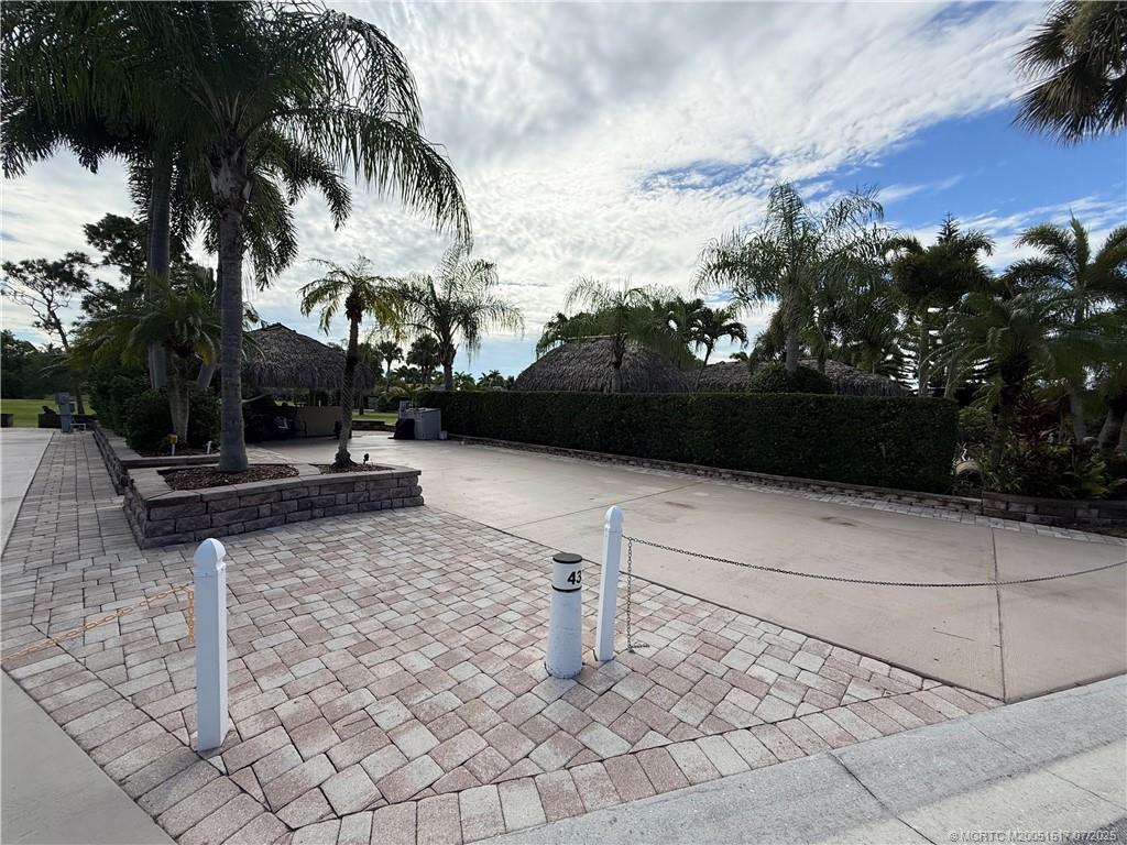 Priced to sell quickly, this beautifully landscaped lot backs directly onto the golf course and is just a short stroll from the bark park—a favorite spot for dog owners! Enjoy the ultimate in outdoor living with a spacious tiki hut featuring a full kitchen complete with granite countertops, a bar, built-in grill, refrigerator, sink, and plenty of storage. Mature, low-maintenance landscaping offers both privacy and a lush tropical feel. The wide frontage includes dedicated golf cart parking, and under the tiki, you'll enjoy sweeping views of the fairway. Best of all, the furniture is included