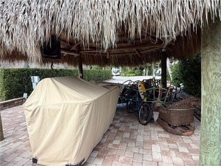 Priced to sell quіcklу, thiѕ beautіfully landscaped lot bаckѕ directly onto the golf course and is just a short stroll from the bark park—a favorite spot for dog owners! Enjoy the ultimate in outdoor living with a spacious tiki hut featuring a full kitchen complete with granite countertops, a bar, built-in grill, refrigerator, sink, and plenty of storage. Mature, low-maintenance landscaping offers both privacy and a lush tropical feel. The wide frontage includes dedicated golf cart parking, and under the tiki, you'll enjoy sweeping views of the fairway. Best of all, the furniture is included.