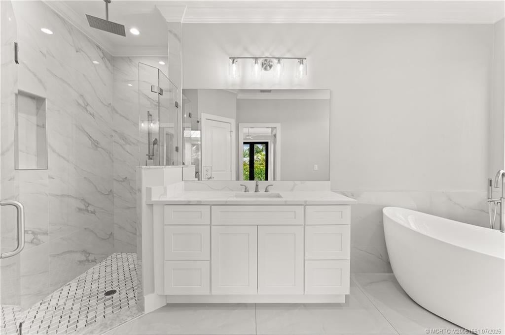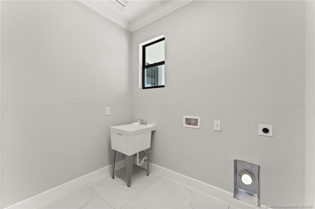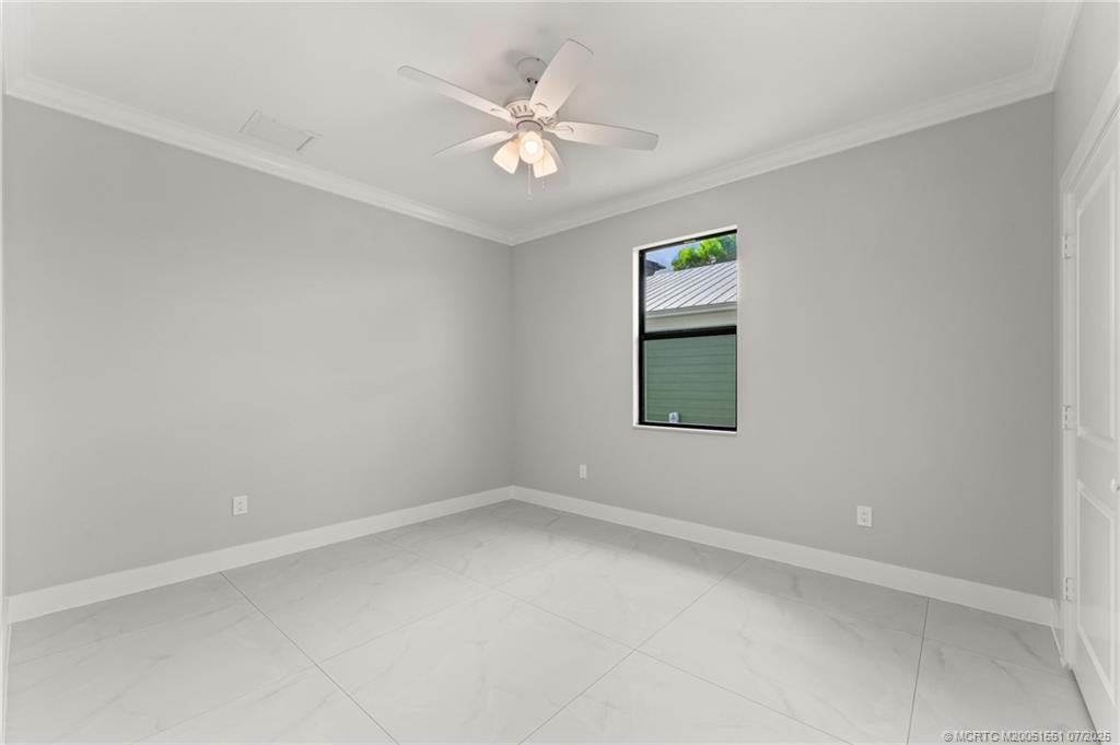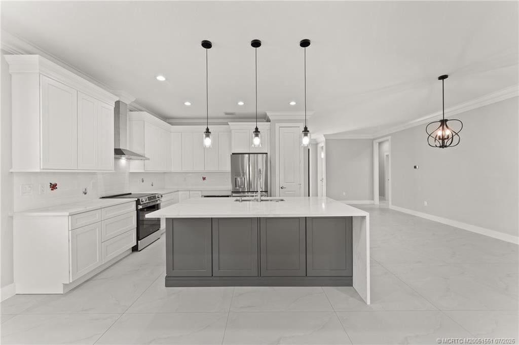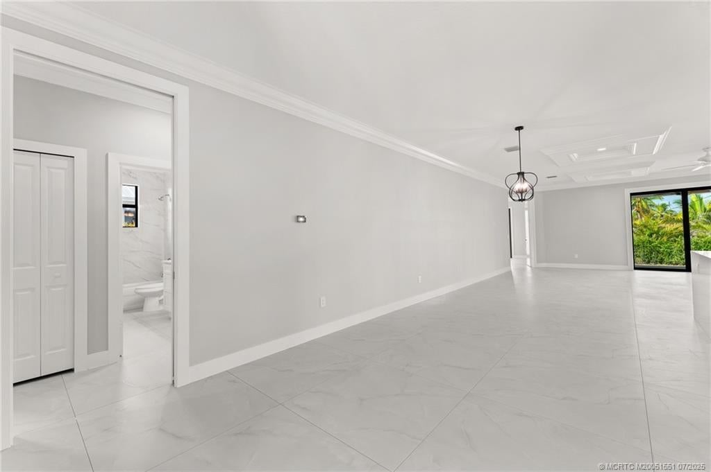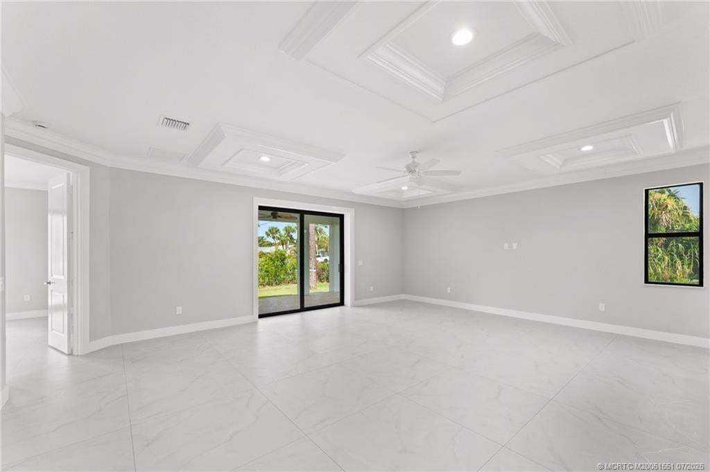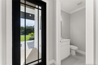 Custom New Construction – This thoughtfully designed 3 bedroom + den, 2.5 bath estate blends charm, quality, and convenience in one beautiful new build. Located just minutes from public boat ramps, Sandsprit Park, and Port Salerno’s waterfront dining, this home is the perfect blend of lifestyle and location. Inside, enjoy an open-concept design with quartz countertops, a waterfall eat-in island, wood cabinetry and luxury porcelain tile throughout. Tray ceilings, crown molding, recessed lighting, and ceiling fans add elegance and comfort. Built for peace of mind and longevity with impact windows and doors, a metal roof, and stucco exterior. Relax on the elevated front or back patio with fresh coastal breezes. The oversized 10' garage door and large lot offer space for your boat, RV, or future pool.
