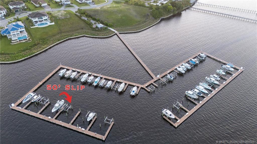 Owner financing available throughout construction—from land purchase to occupancy. Exceptional opportunity to build your dream home on this prime waterfront parcel in the exclusive gated community of Langford Landing. Situated over 30 feet above sea level, this property offers peace of mind and panoramic, mile-wide views of the St. Lucie River. Enjoy deep water access with a 50' boat slip and 24,000 lb lift in the private marina—ideal for avid boaters with quick access to the inlet and no fixed bridges. The southern exposure ensures natural light all day and stunning sunrises and sunsets. With limited inventory of quality waterfront land remaining in the area, this lot stands out as a premier offering in a coveted location. Full set of Building Plans available.